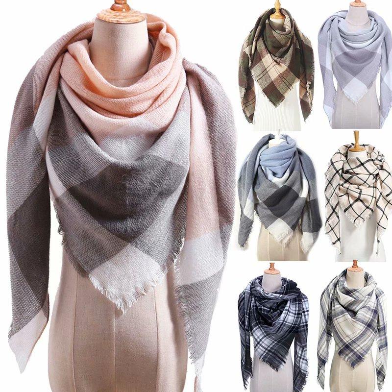 Клетчатый треугольный шарф, женский утолщенный мягкий модный платок, шарфы, теплая мягкая кашемировая шаль — купить товар онлайн с бесплатной доставкой по всему миру!