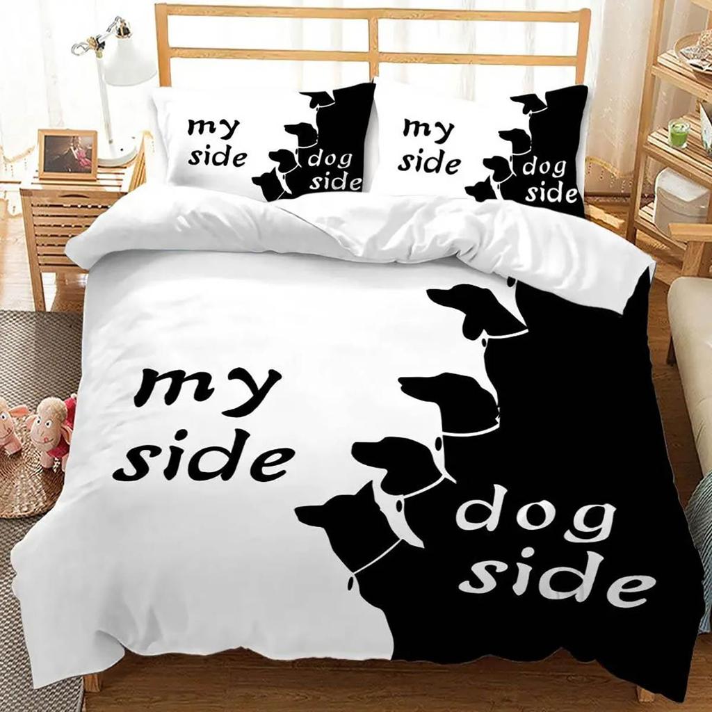 Черно-белый мультяшный принт с изображением кошки и собаки, пододеяльник, простой стиль, пододеяльник, наволочка, комплект постельного белья из трех предметов