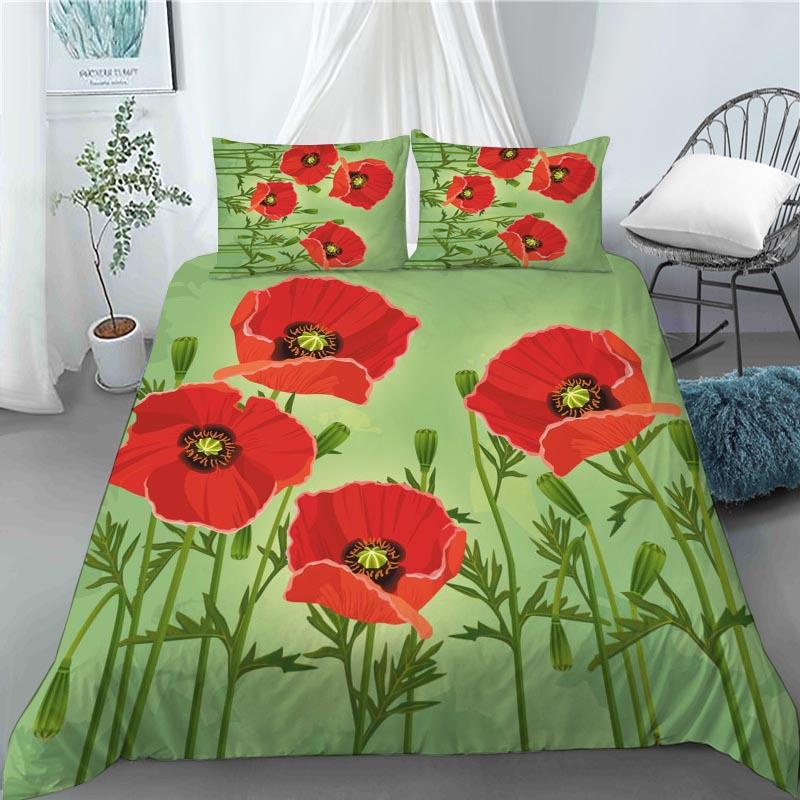 3D Красный мак пододеяльник King Queen Size Красивый цветок полиэстер пододеяльник с наволочками для детей и взрослых Декор для дома и спальни