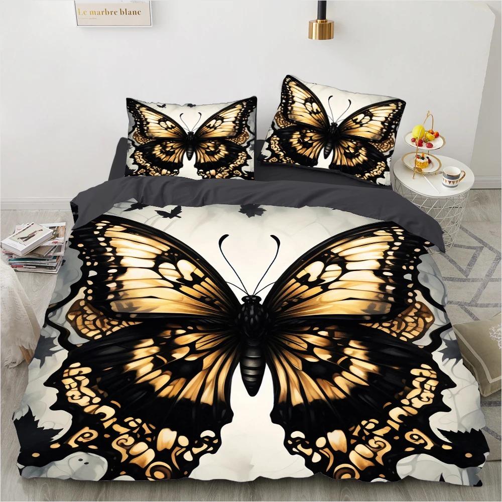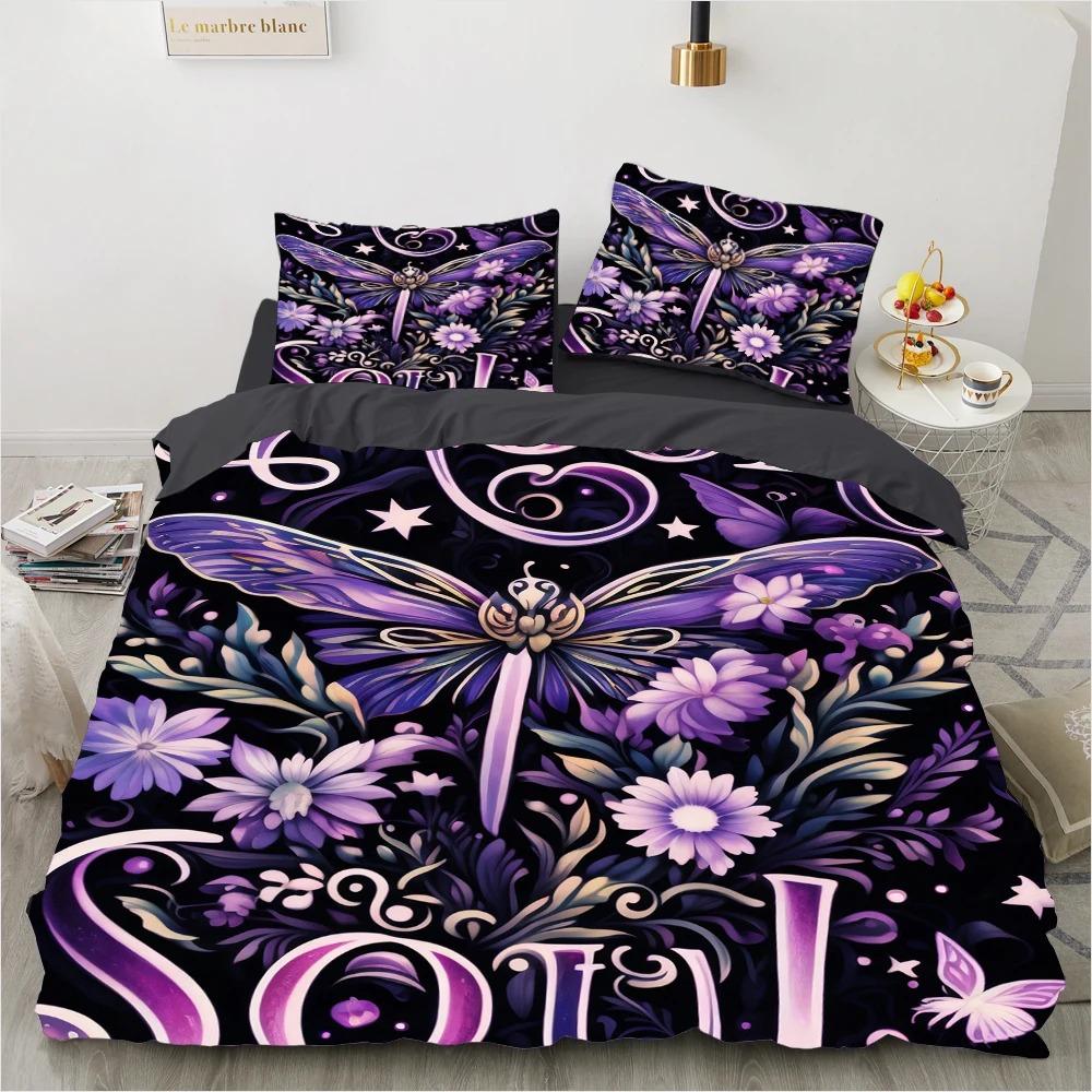 Роскошные комплекты постельного белья с 3D-цифровой печатью, фиолетовые богемные бабочки, пододеяльник, комплект королевы, королевского размера, покрывало с цветочным узором
