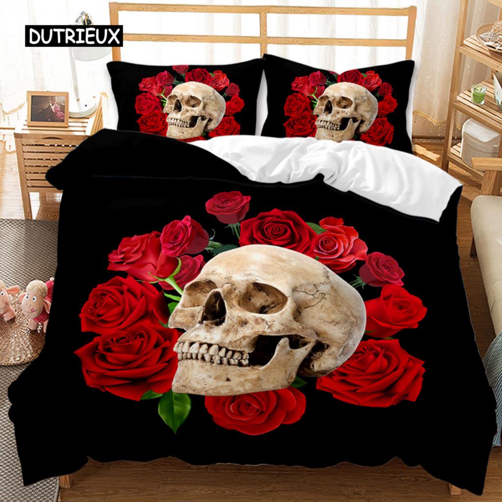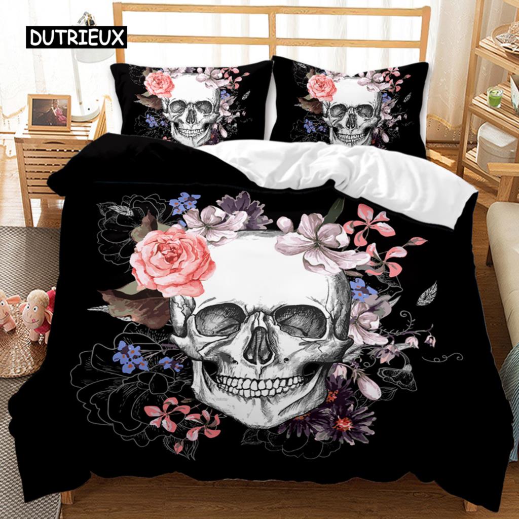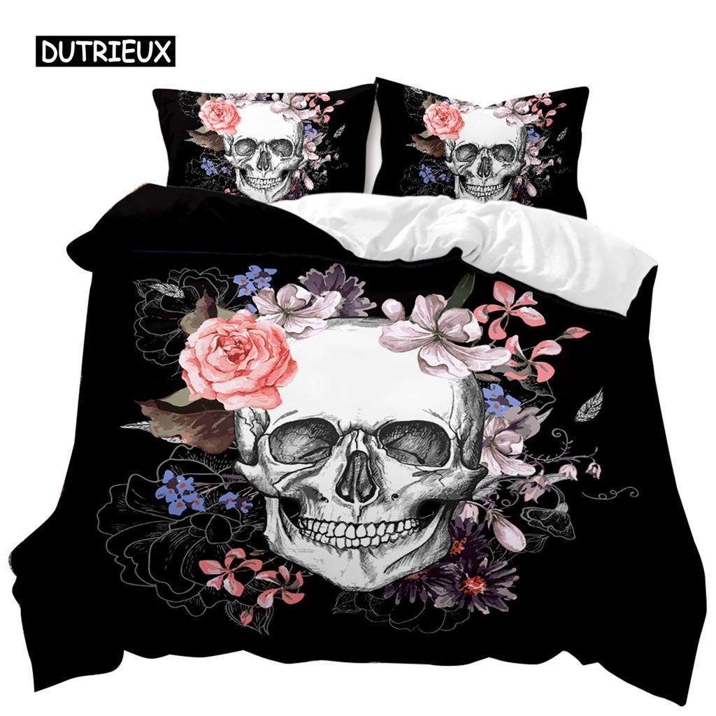 Комплект постельного белья с черепом Queen 3D Skeleton Floral Skull Pattern Printed Beds Qulit Cover Gothic Microfiber Beds Queen Size