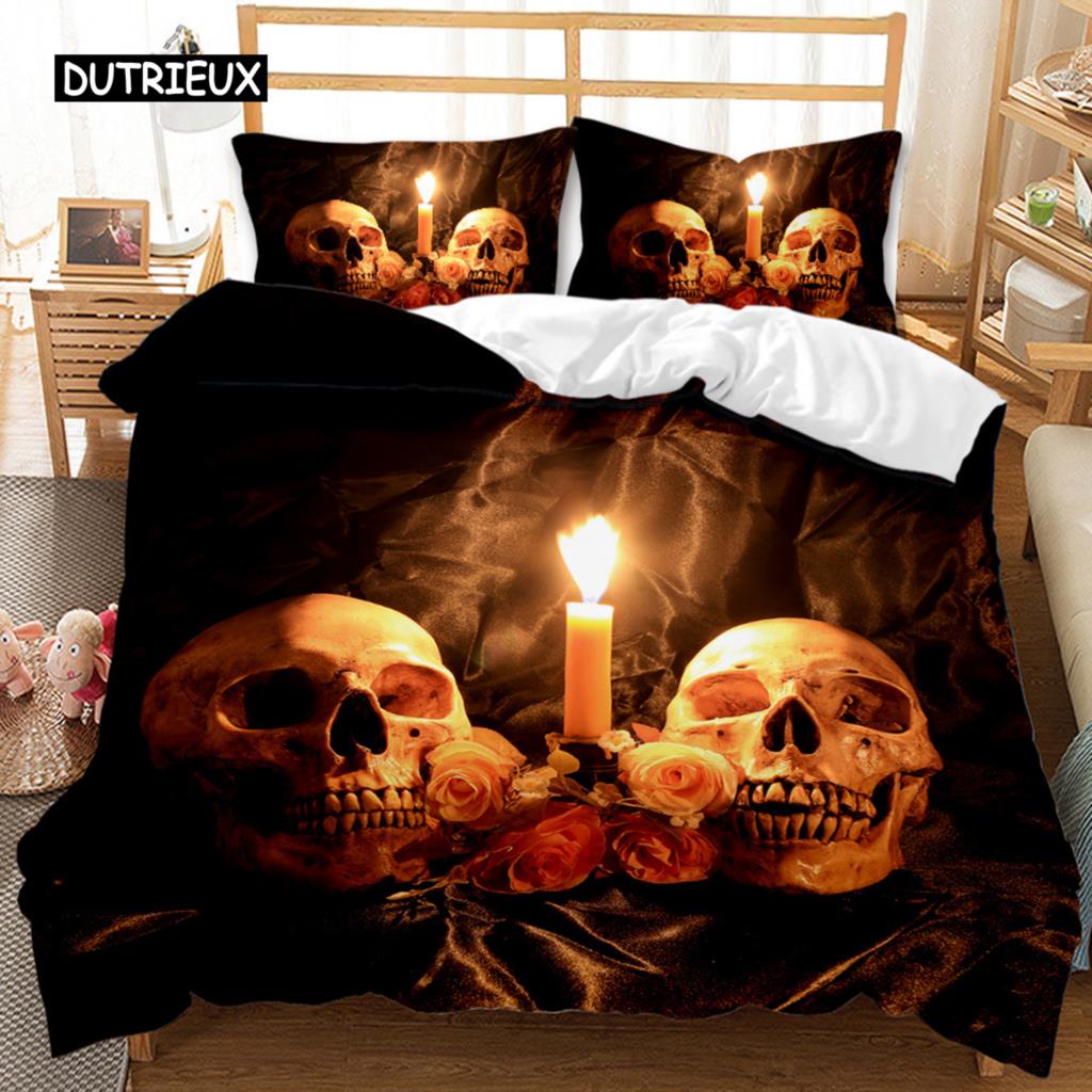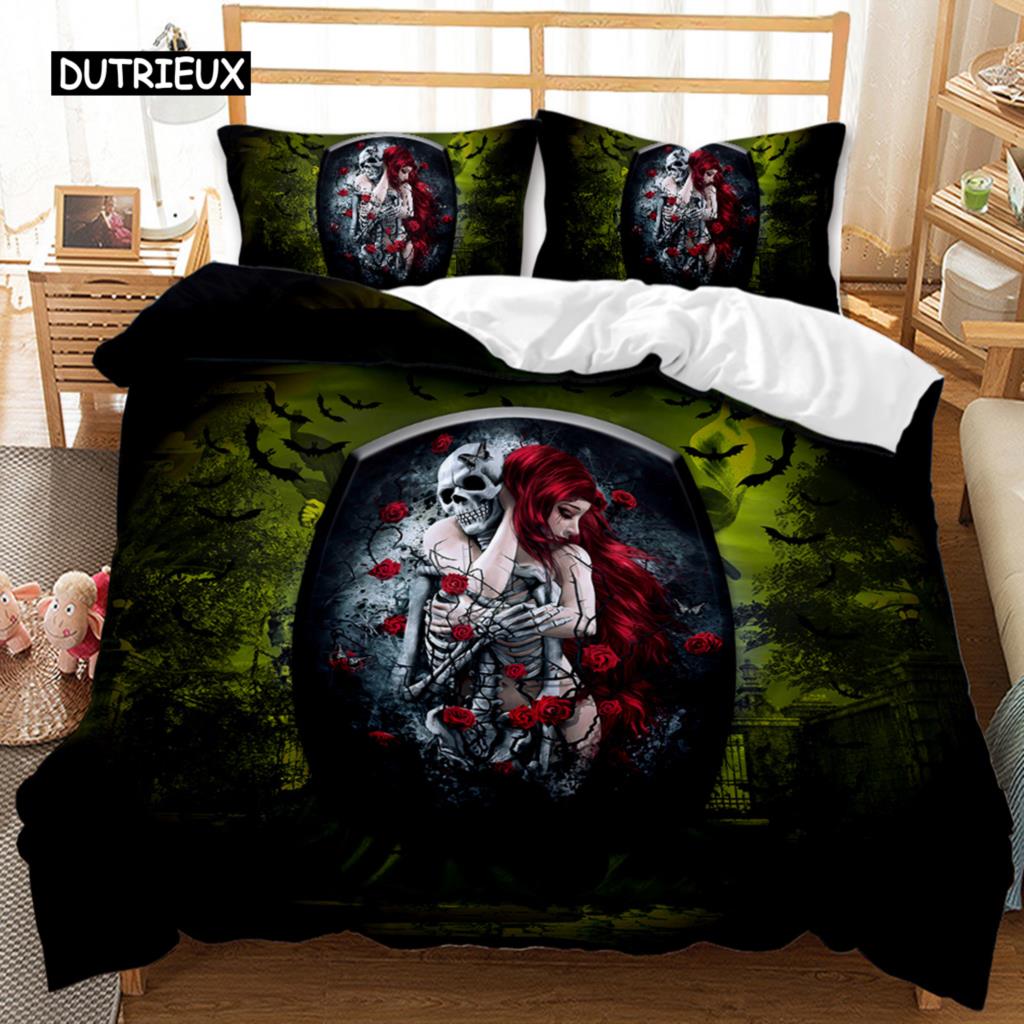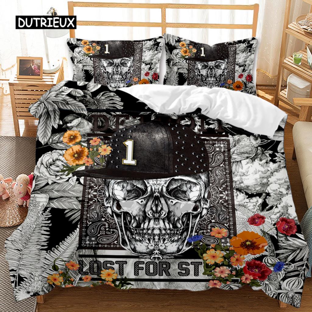 Комплект постельного белья с черепом Queen 3D Skeleton Floral Skull Pattern Printed Beds Qulit Cover Gothic Microfiber Beds Queen Size