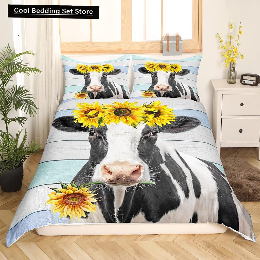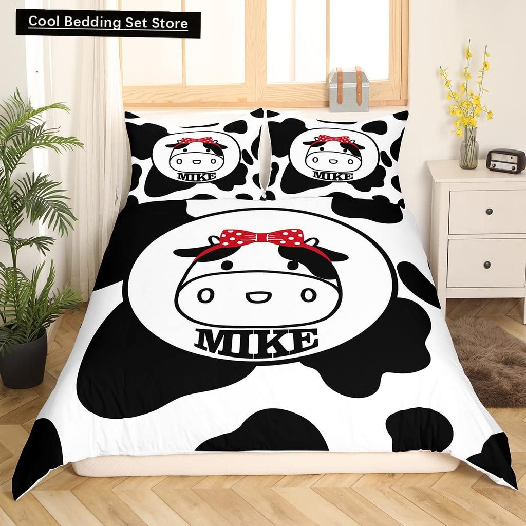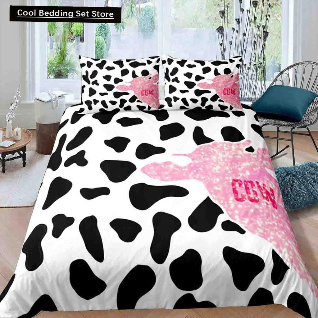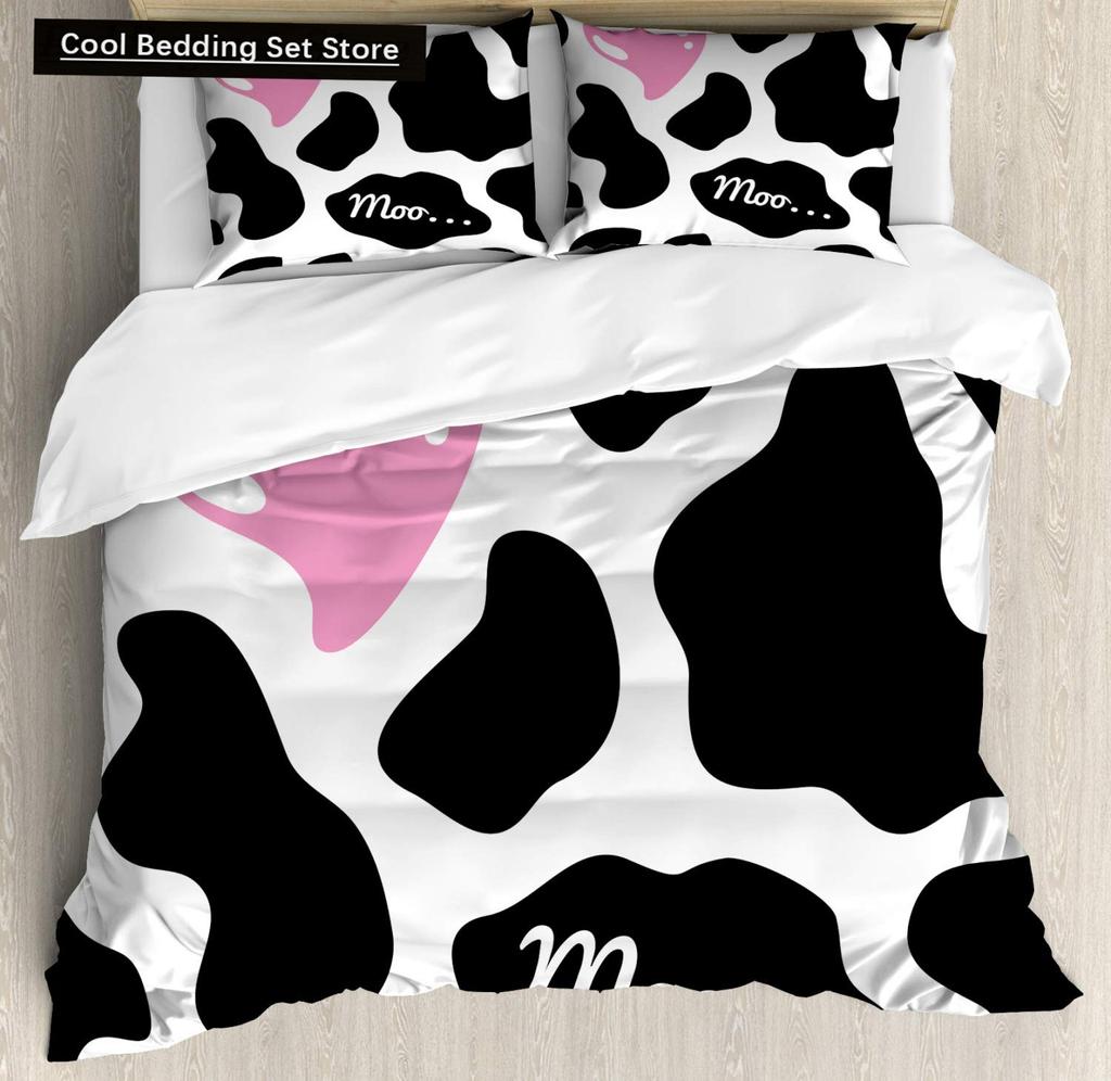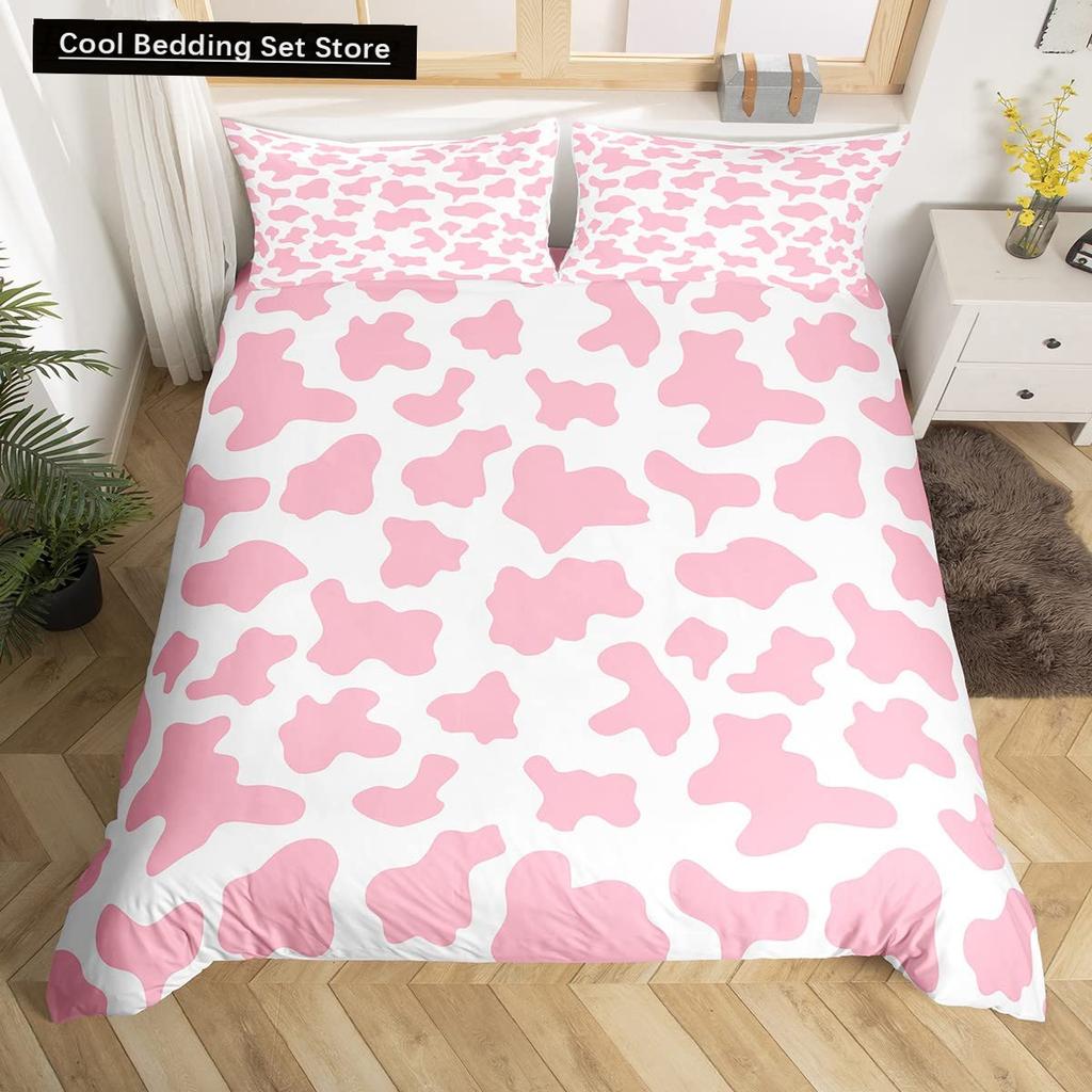 Пододеяльник размера King/Queen с молочной коровой, розово-белый, мультяшный животный принт, клубничный комплект постельного белья для детей, мальчиков, девочек, с принтом коровы, мягкий пододеяльник