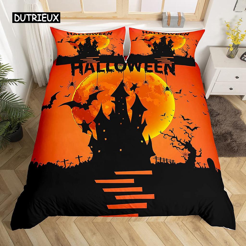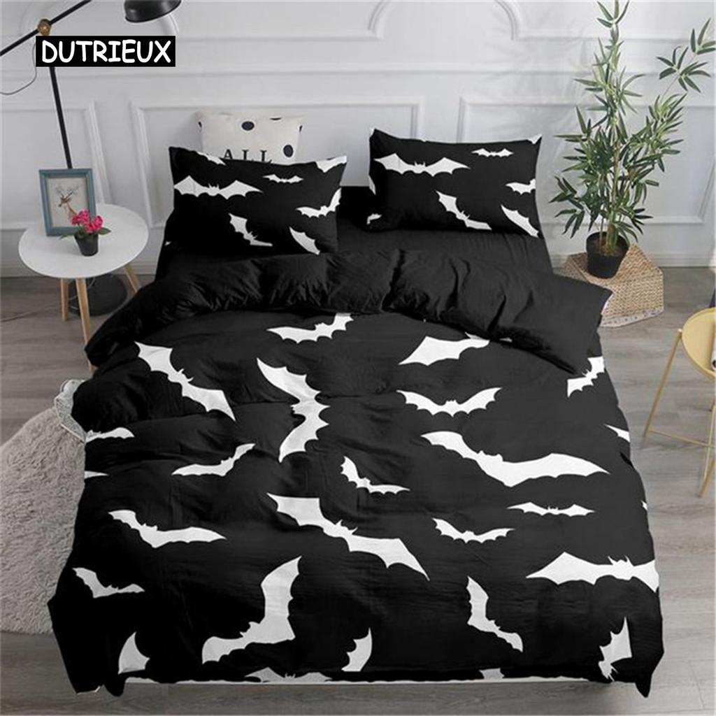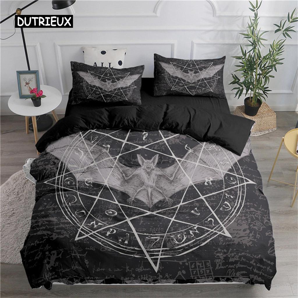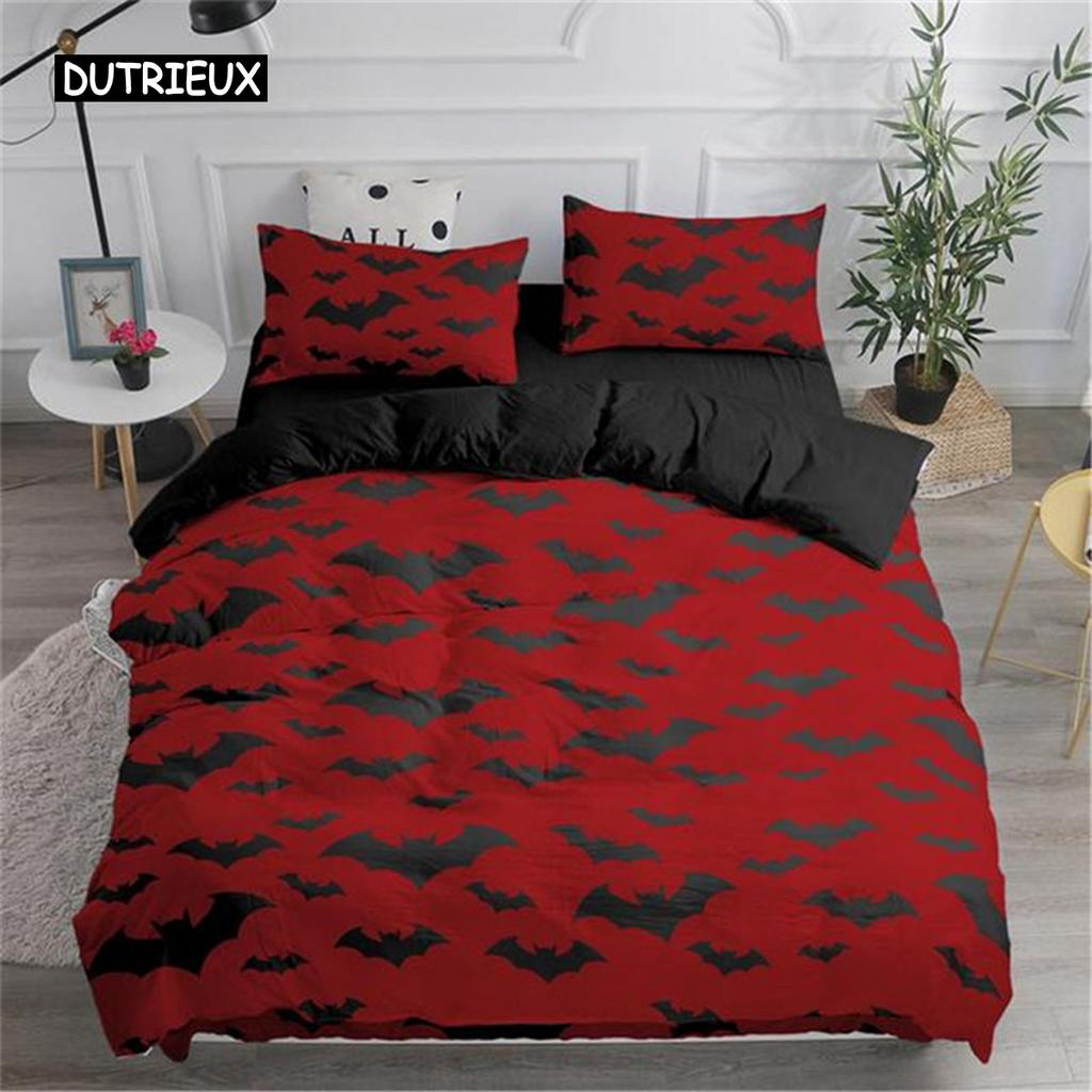 Пододеяльник Хэллоуин Летающие летучие мыши-вампиры Пододеяльник Полиэстер Колдовство Волшебный стеганый чехол Подарки на праздник Украшение комнаты