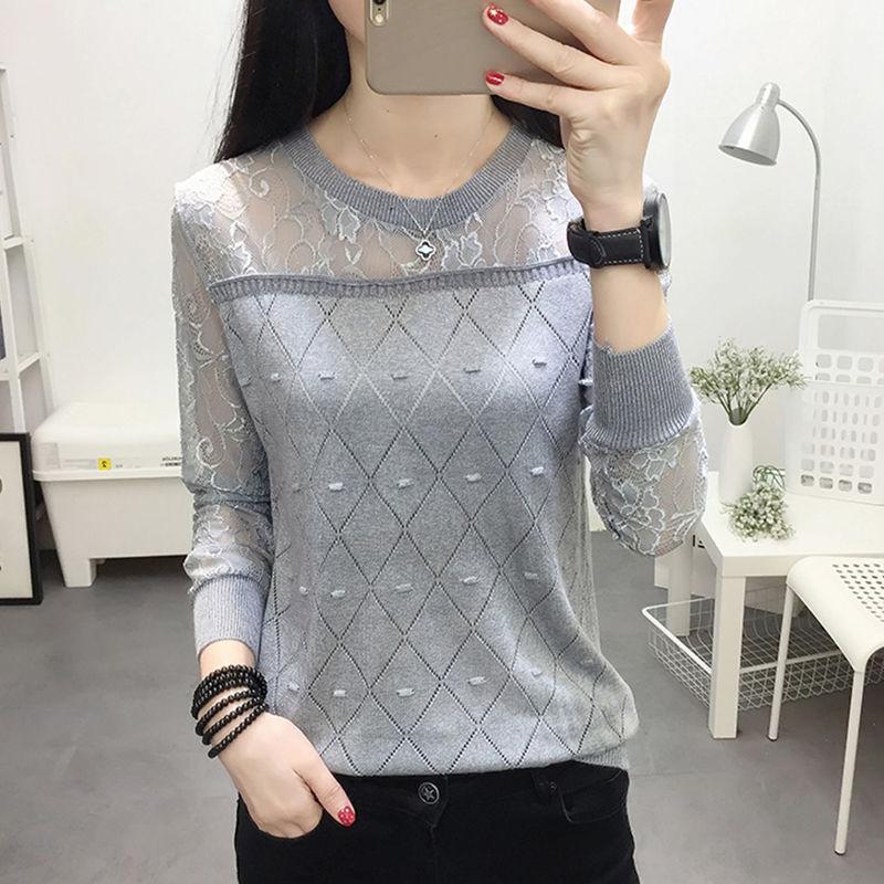 Кружевная основа рубашки женская футболка с длинным рукавом свободный и универсальный весенний трикотаж женский тонкий топ