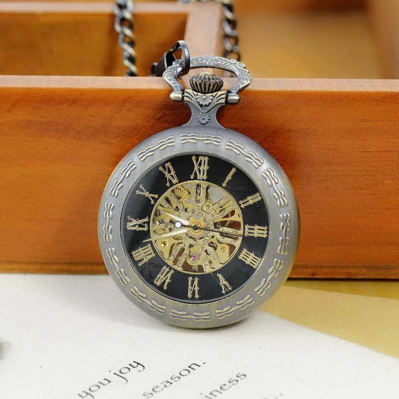 Карманные часы в стиле аниме, ретро-механические часы с двумя элементами, карманные часы в римском стиле