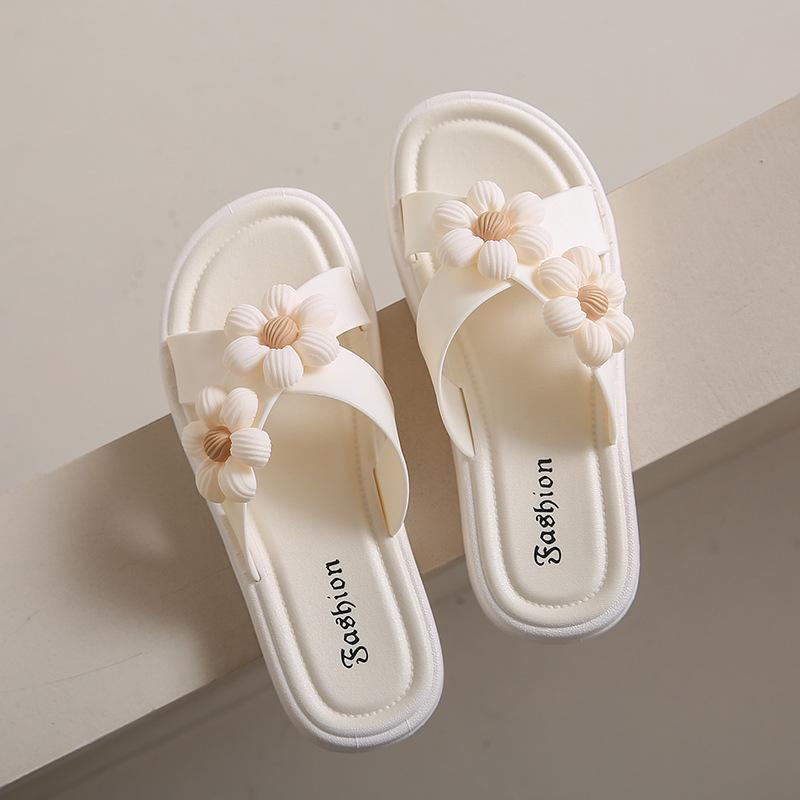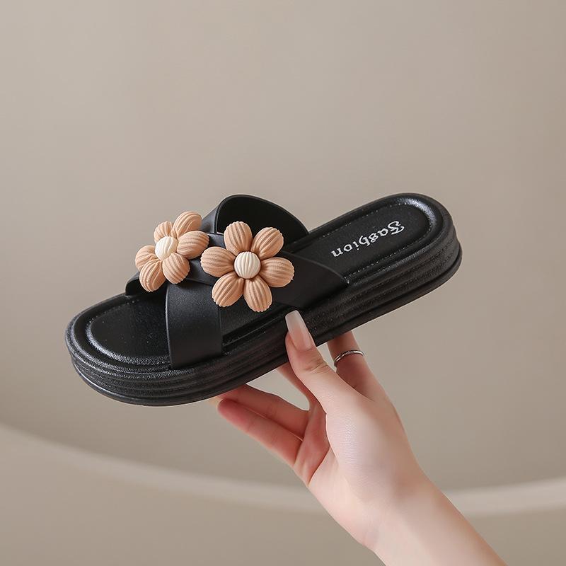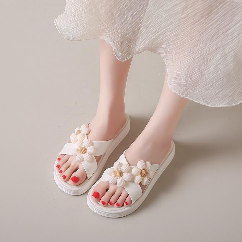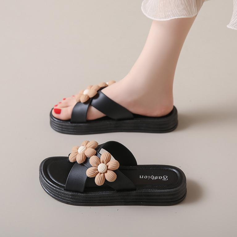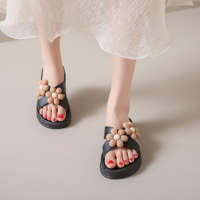 Цветочные тапочки для женщин, летние, плоская подошва, нескользящая, толстая подошва, верхняя одежда, модные пляжные сандалии