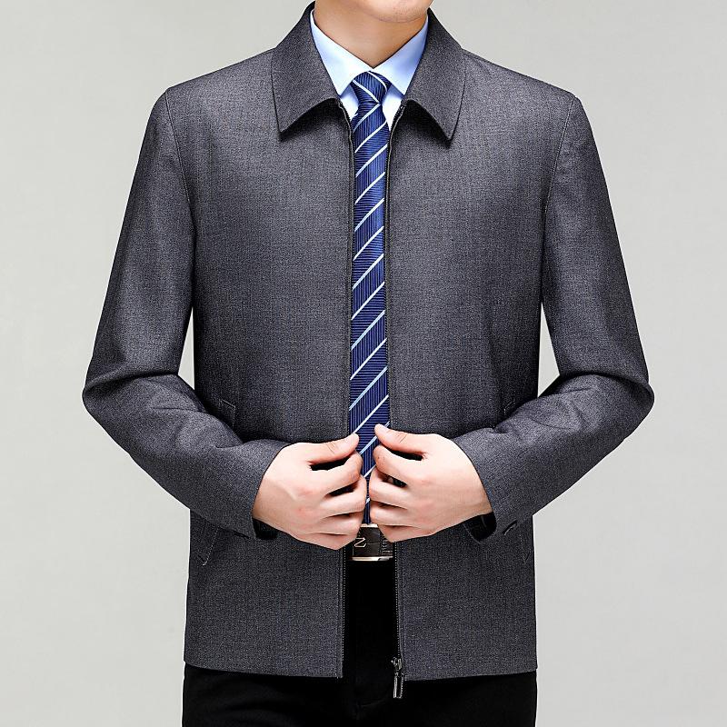 Весна и осень, новая мужская шерстяная куртка, деловая одежда для пап среднего и пожилого возраста, классическая куртка с лацканами и молнией большого размера, высокого класса