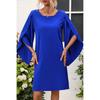 Летнее круглое шея накидка с коротким рукавом свободные женские повседневные платья элегантное синее платье больших размеров для женщин модное винтажное однотонное женское короткое платье 25913