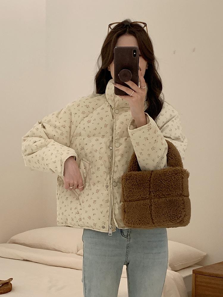 Милая маленькая цветочная куртка-стойка с воротником-стойкой, женская, 2024, новая свободная куртка-хлеб, короткая куртка