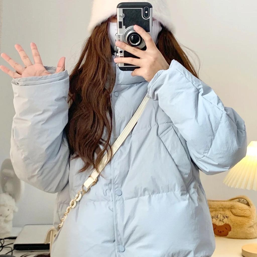 Пуховик женский короткая куртка голубого цвета 2024 года новый маленький белый утиный пуховый жакет зимнее пальто