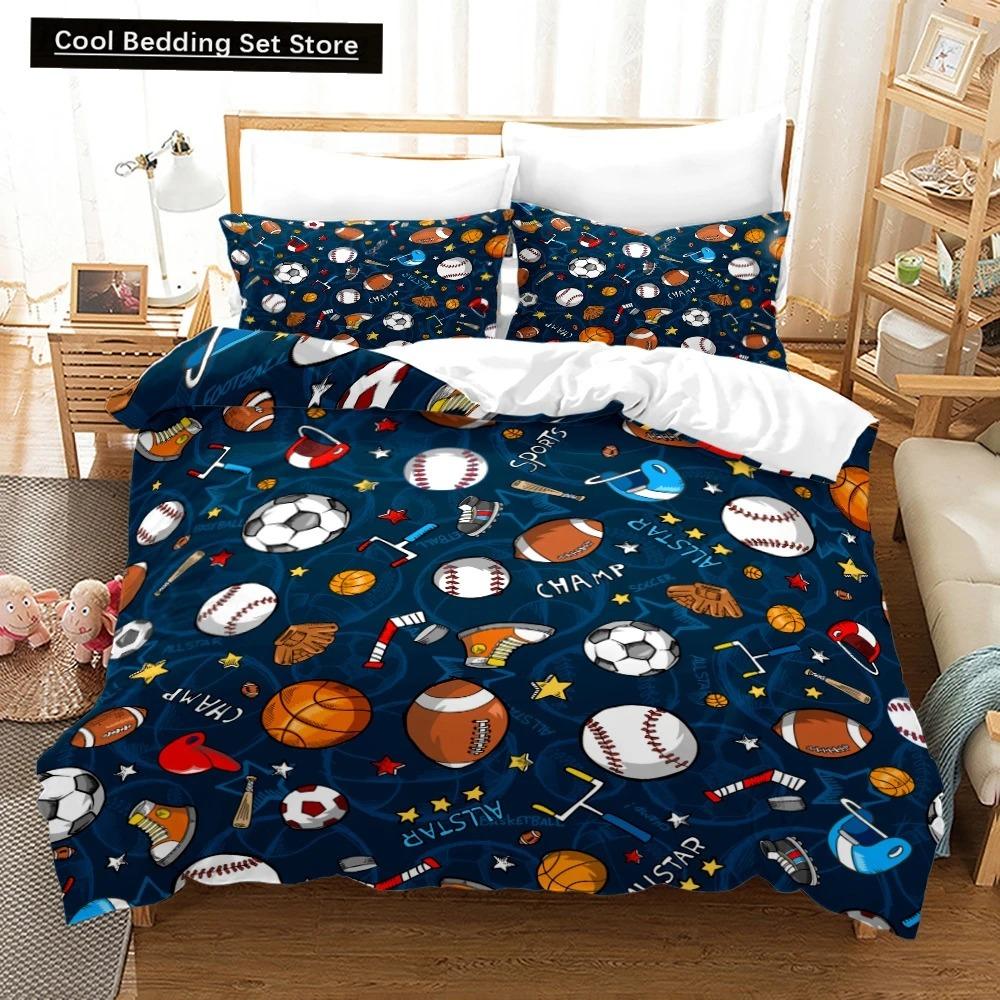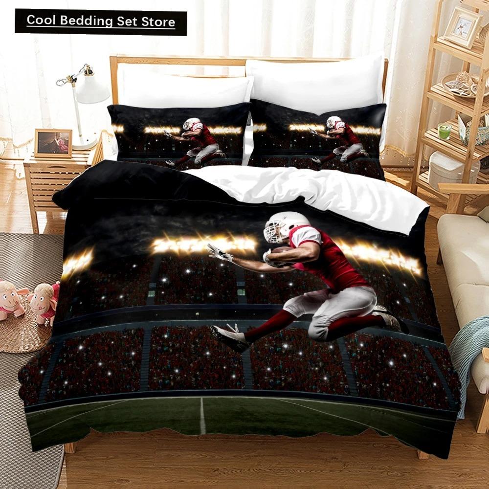 3D Американский футбол King Queen Пододеяльник Мяч Спортивный комплект постельного белья для детей подростков мальчиков любителей спорта 23 шт. полиэстер пододеяльник