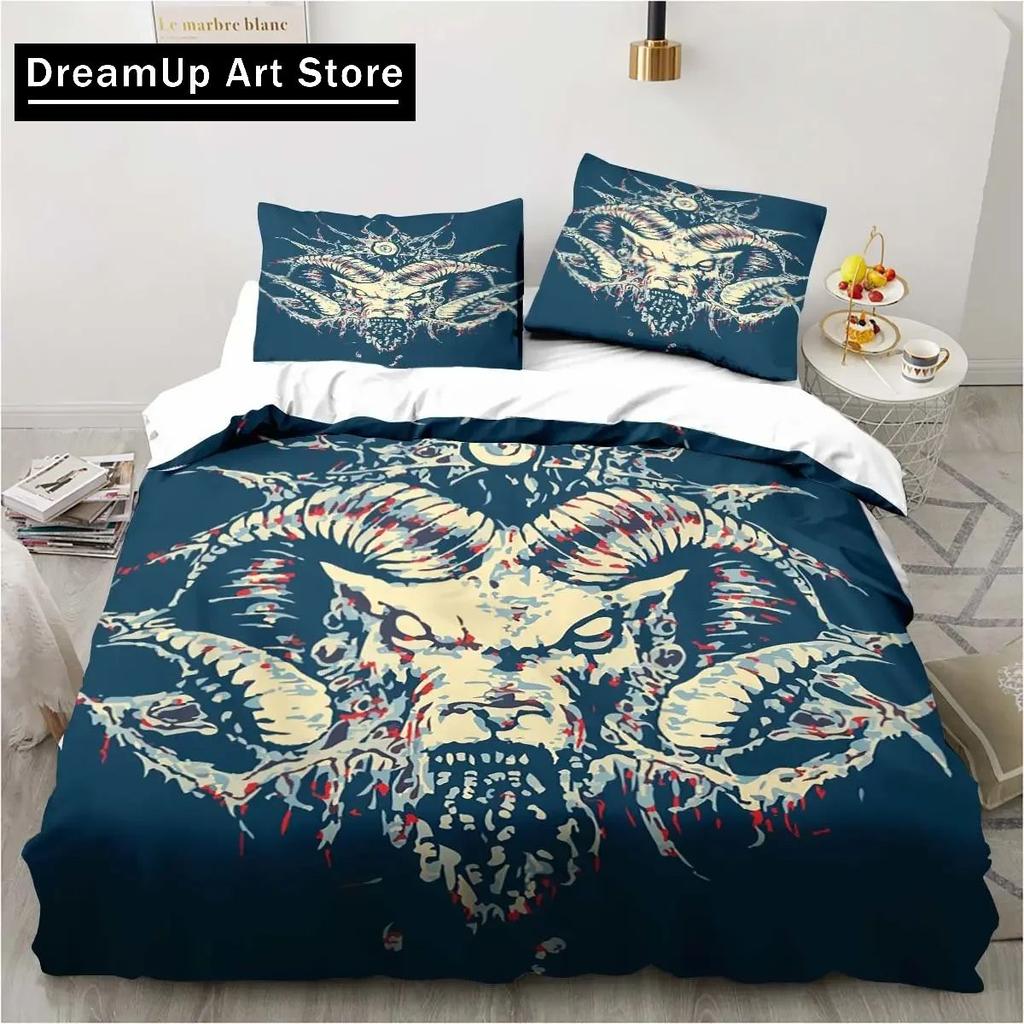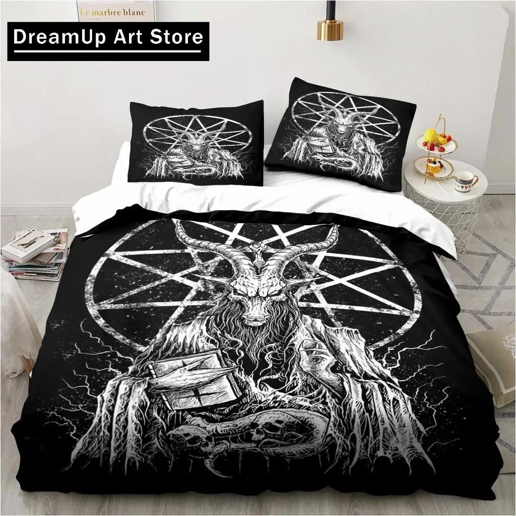 Бафомет Сатана Демон Зло Рождество Навидад Постельное белье Комплект для мальчиков и девочек Твин Queen Полный размер Пододеяльник Наволочка Кровать для взрослых
