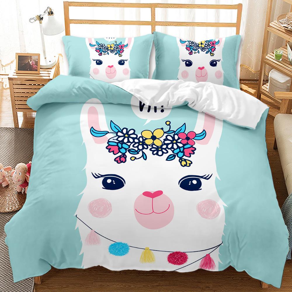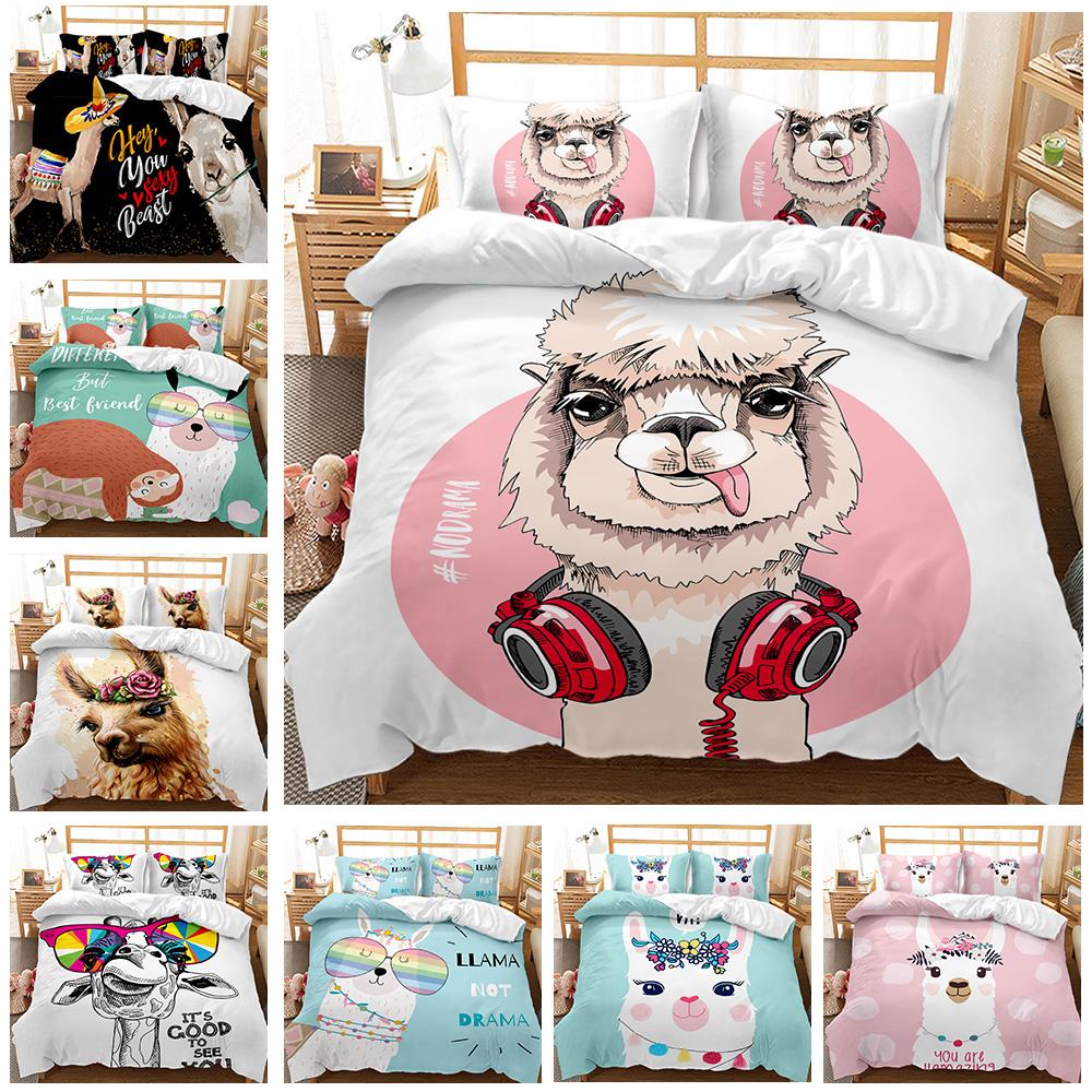 Комплект постельного белья с изображением ламы, размер Queen King, полный размер Twin, милый комплект постельного белья из альпаки, декоративный пододеяльник из 3 предметов, покрывало с изображением животных