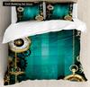 Золотой Индустриальный Механизм Король Полный Пододеяльник Комплект Постельного Белья в Стиле Стимпанк Механическое Устройство Покрывало Полиэстер Чехол для Одеяла