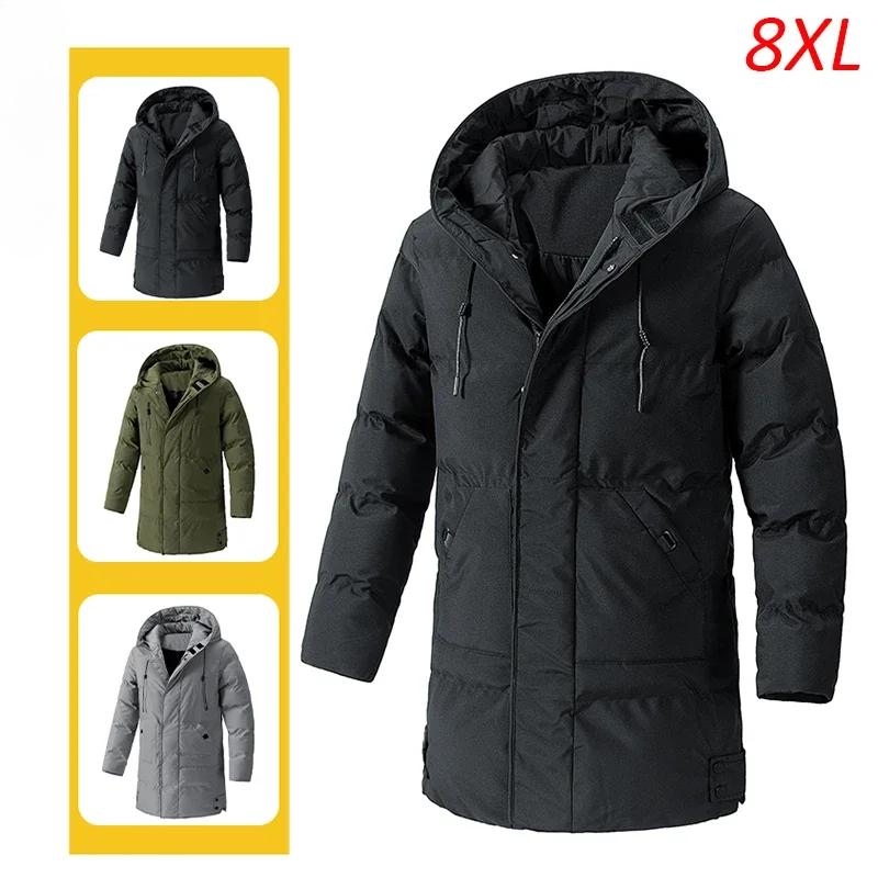 Зимняя теплая и толстая повседневная ветрозащитная куртка пальто мужская парка средней длины с капюшоном большого размера 8XL куртка пальто