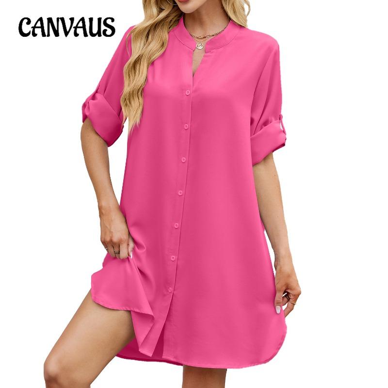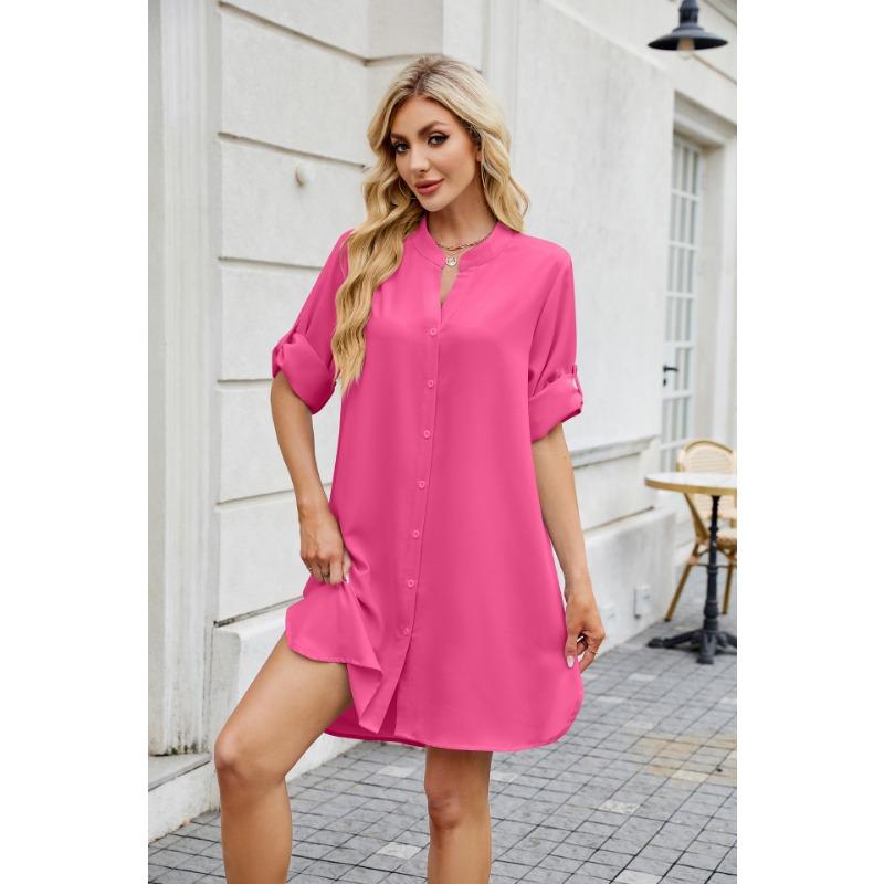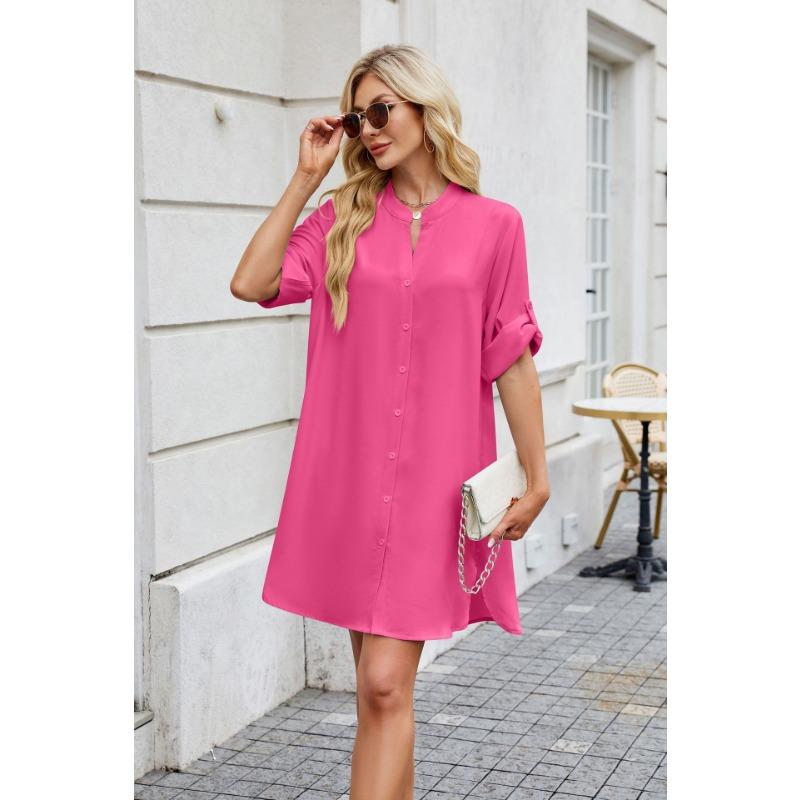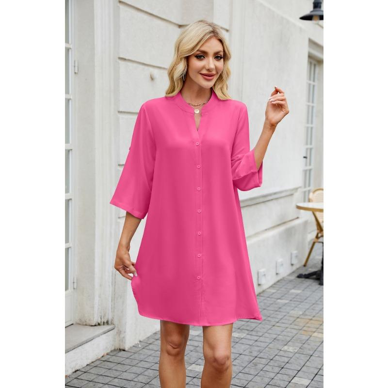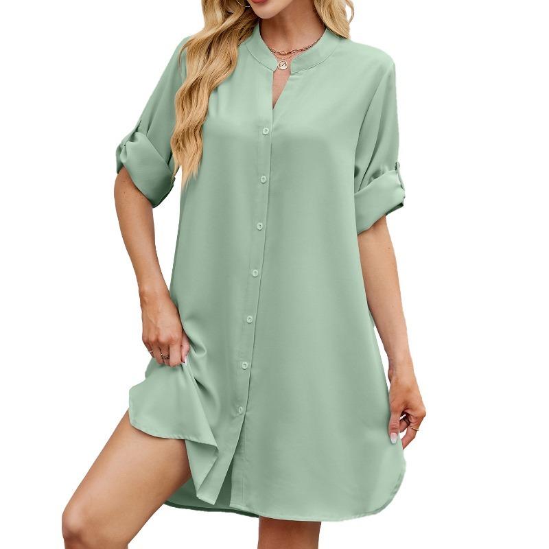 Женские весенние и летние новые однотонные свободные платья-рубашки с рукавами средней длины и застежкой на пуговицы для женщин