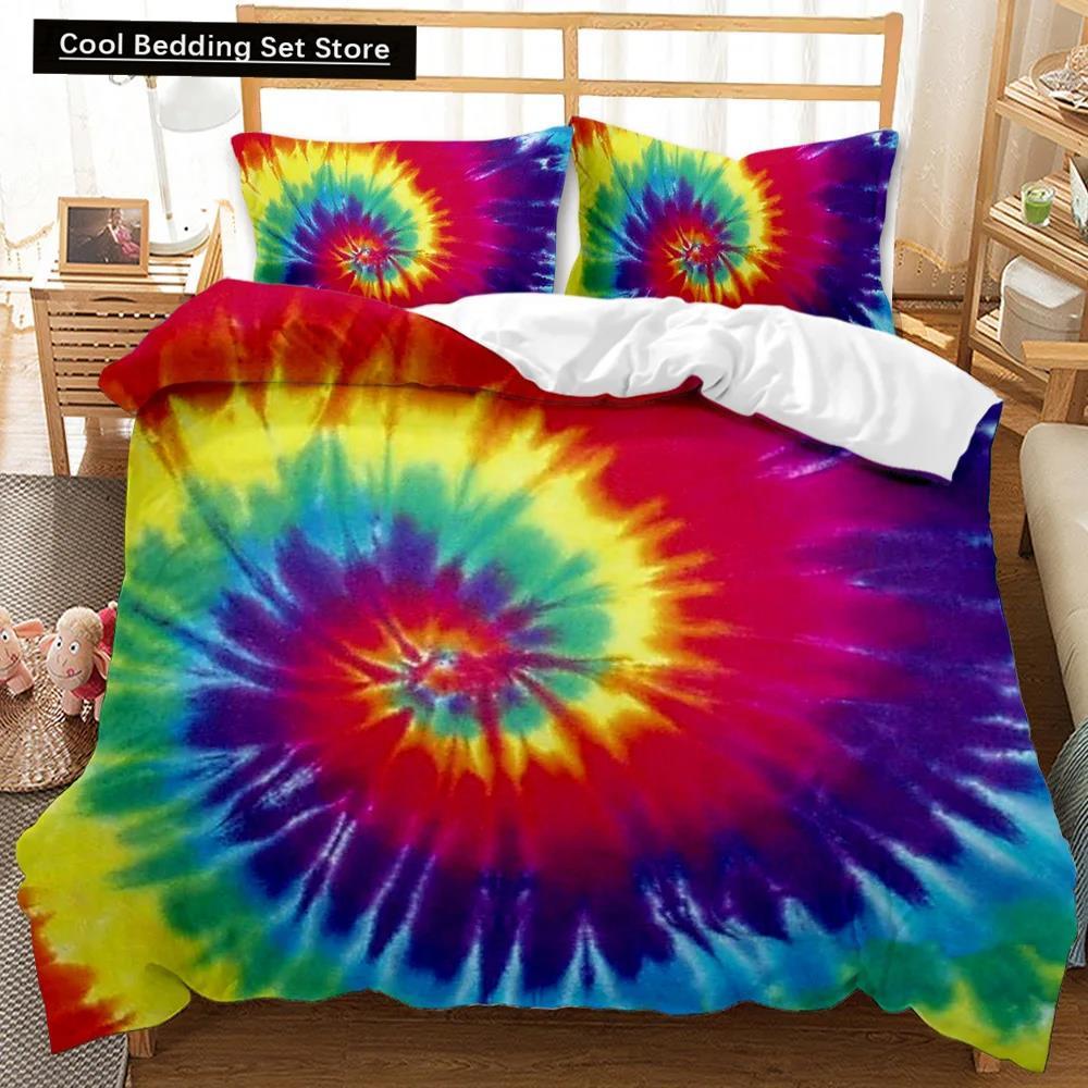Комплект постельного белья Boho Tie Dye, комплект постельного белья в стиле хиппи, комплект постельного белья синего и фиолетового цвета для двоих, цыганский комплект постельного белья размера «king-size», полиэстеровый чехол для одеяла