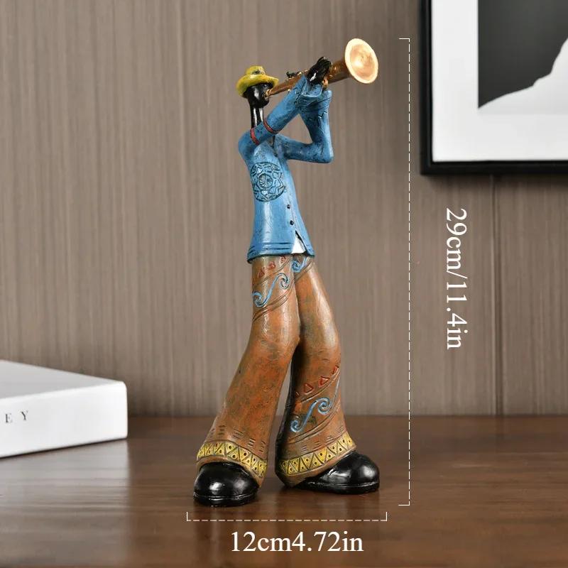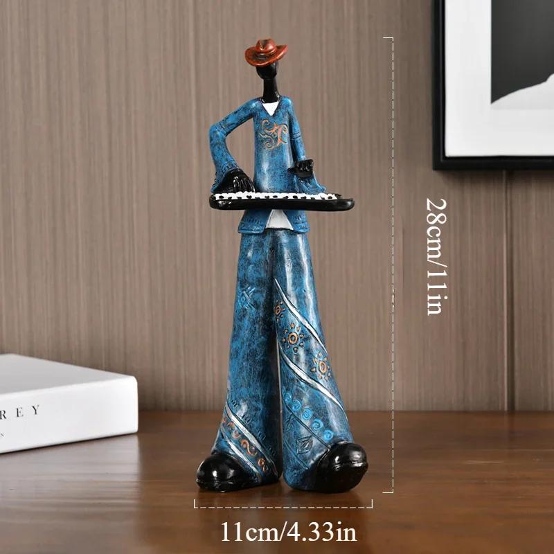 2. Скульптура саксофониста:Эта статуя, воплощающая суть музыкального самовыражения, изображает человека, одетого в яркий синий костюм и страстно играющего на саксофоне.. Эта скульптура, дополненная стильной шляпой, придает ей изюминку и передает ощущение страсти и изысканности, что делает ее прекрасным дополнением к декору вашего дома.;