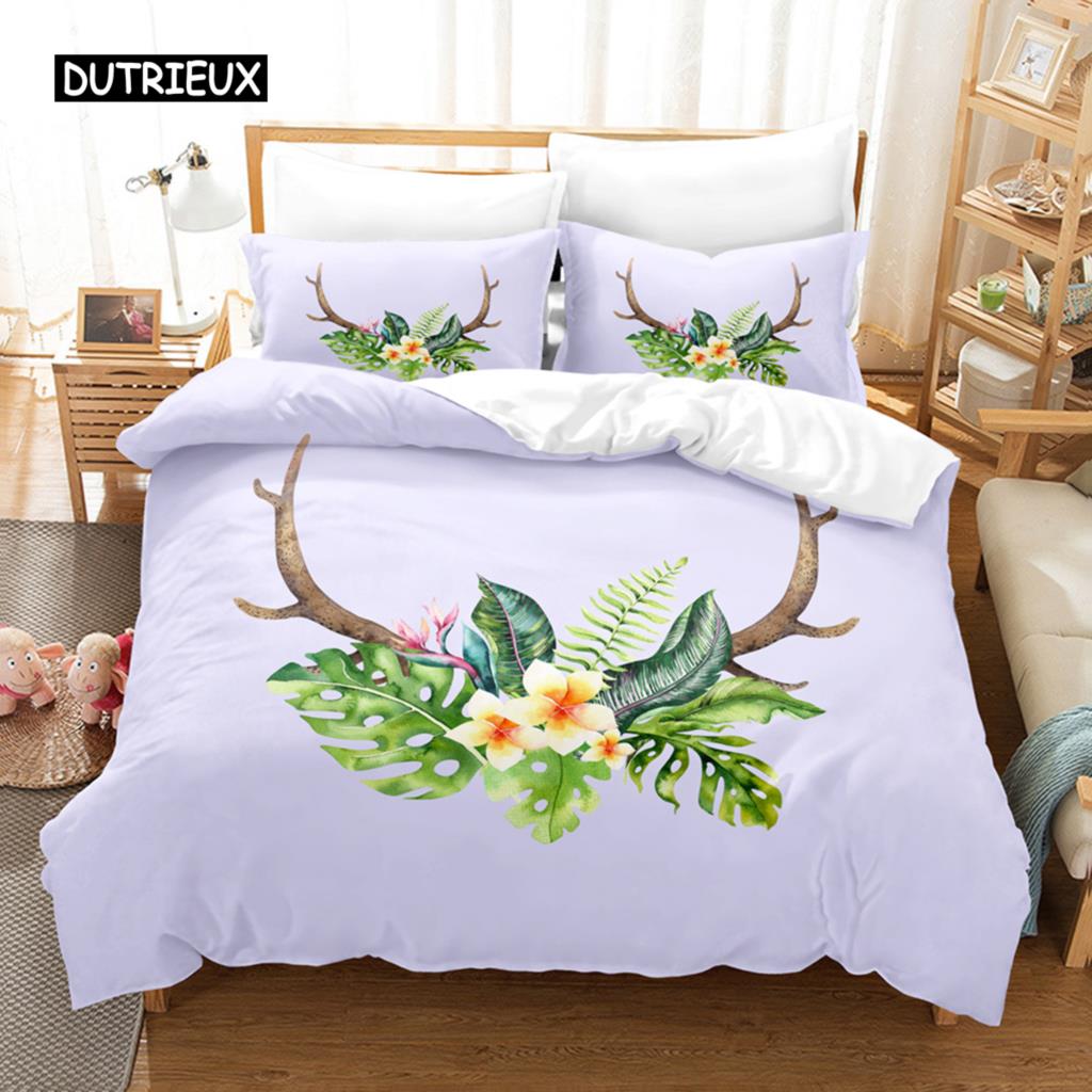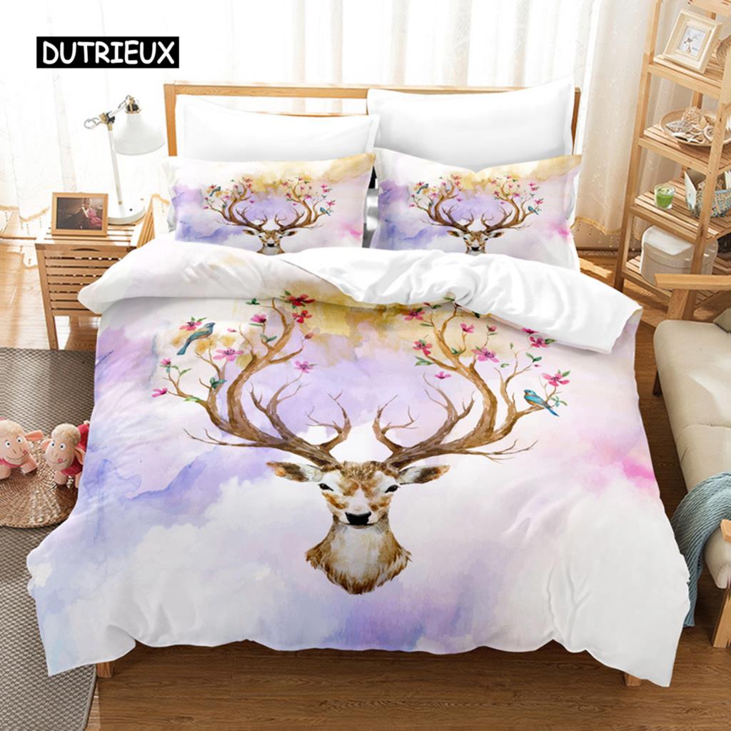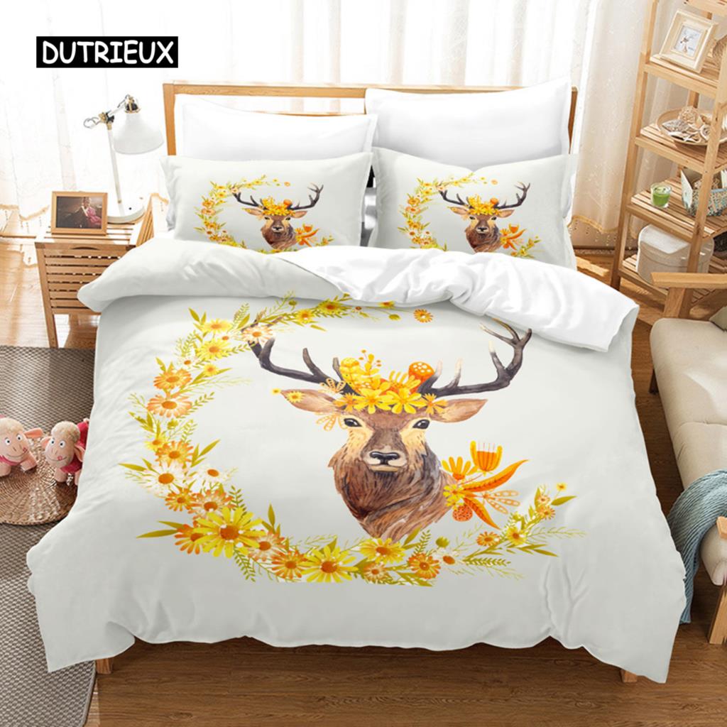 Комплект постельного белья с изображением оленя Комплект постельного белья с изображением оленя для детей, тема оленя для детей-подростков, двуспальное одеяло размера «king-size» из полиэстера
