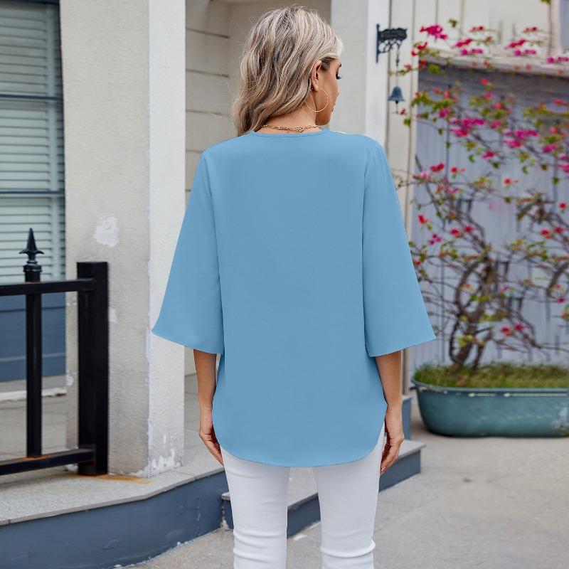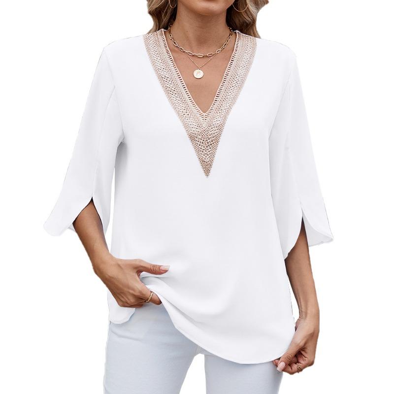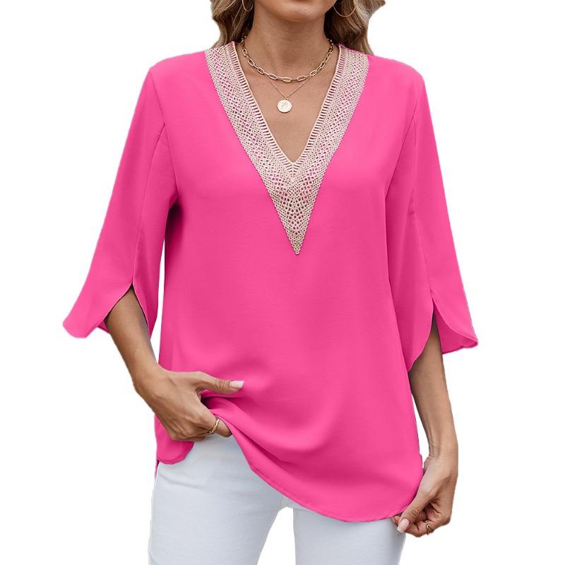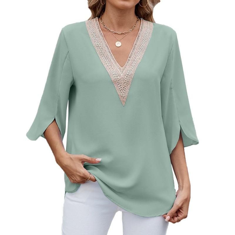 Женская весенне-летняя новая однотонная блузка из шифона с V-образным вырезом и рукавами средней длины