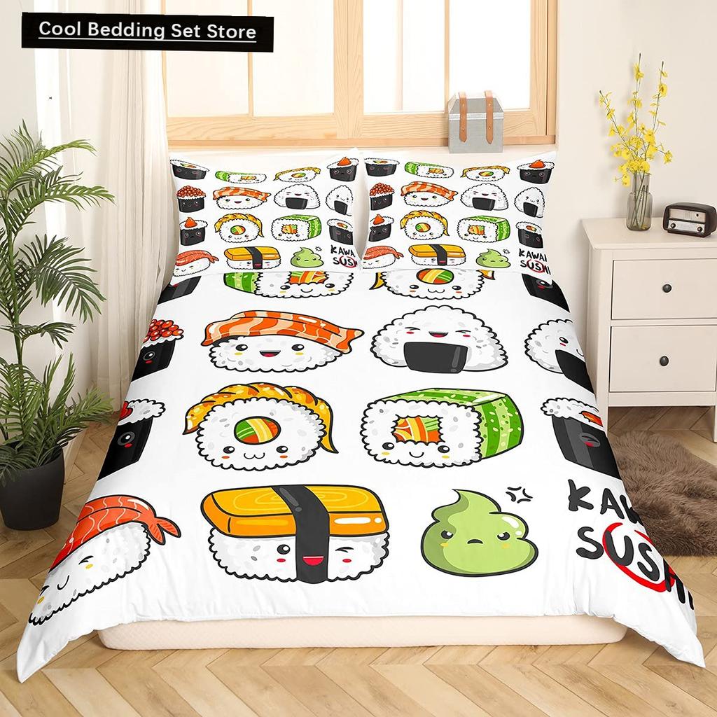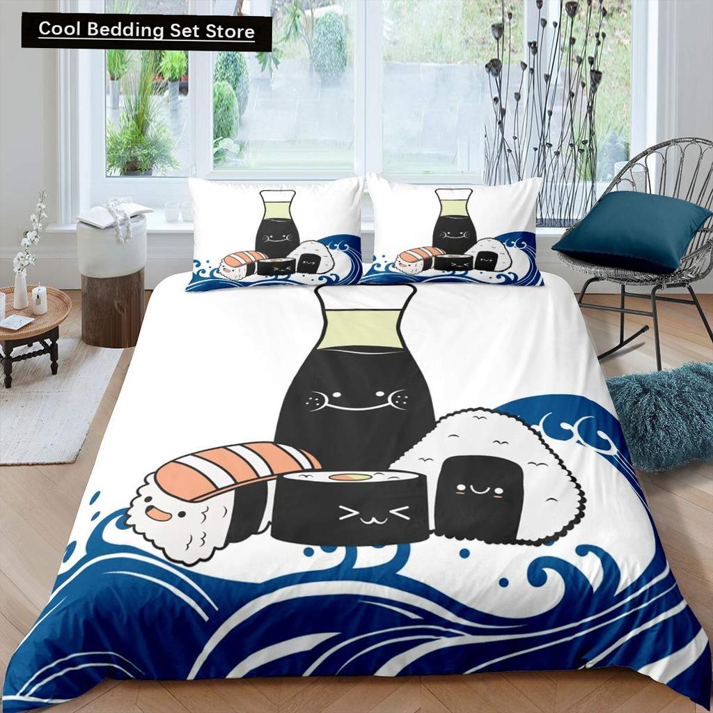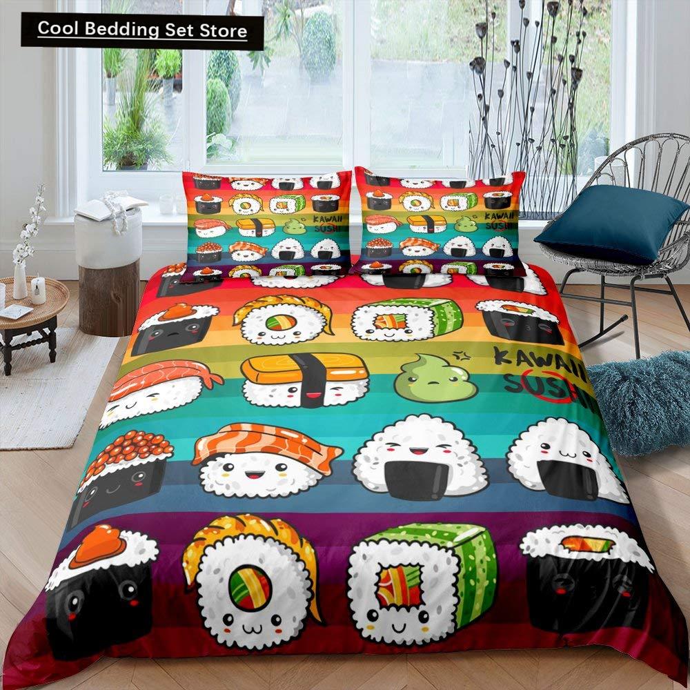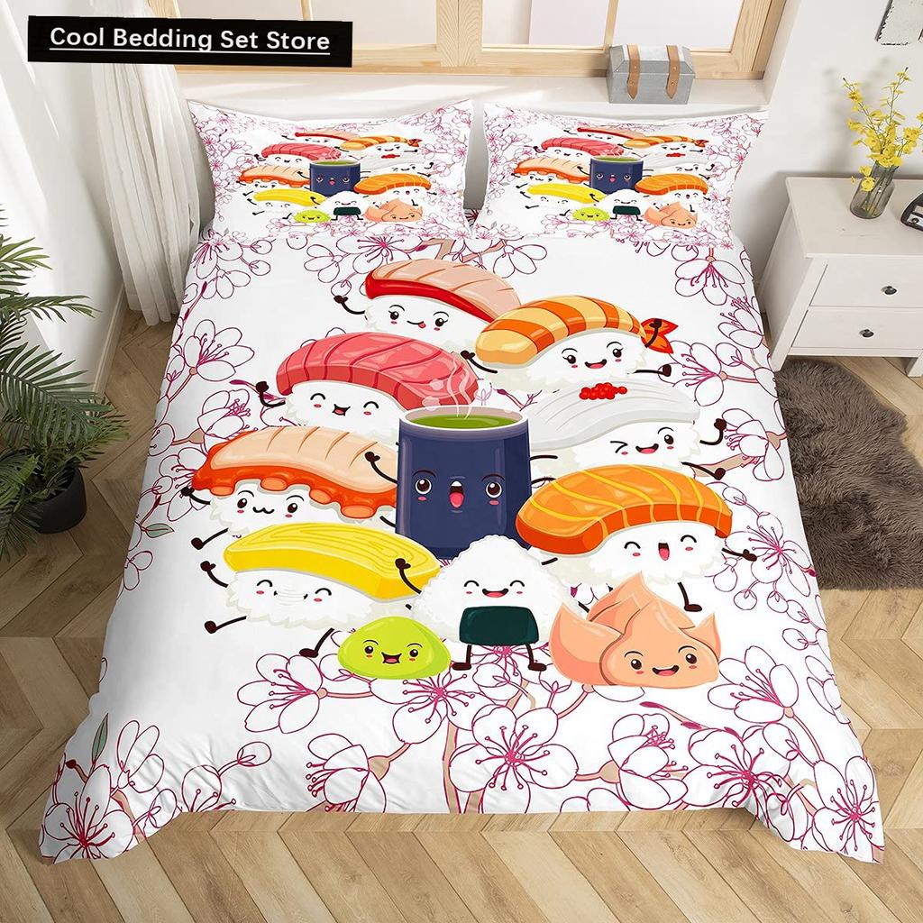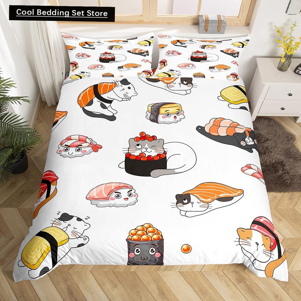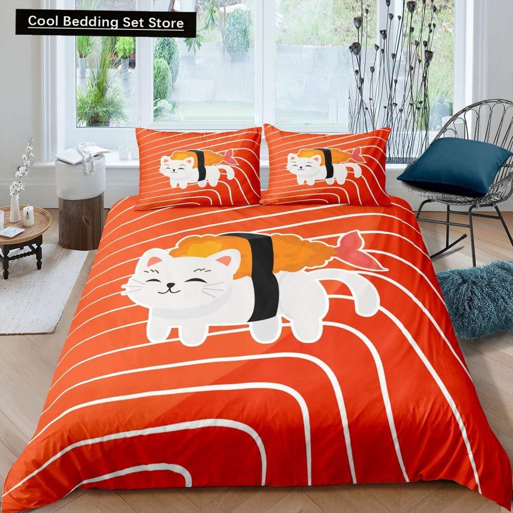Японский суши King Queen пододеяльник Маленький комплект постельного белья Кошка Новинка Мультфильм Домашнее животное Японская еда Белый полиэстер пододеяльник