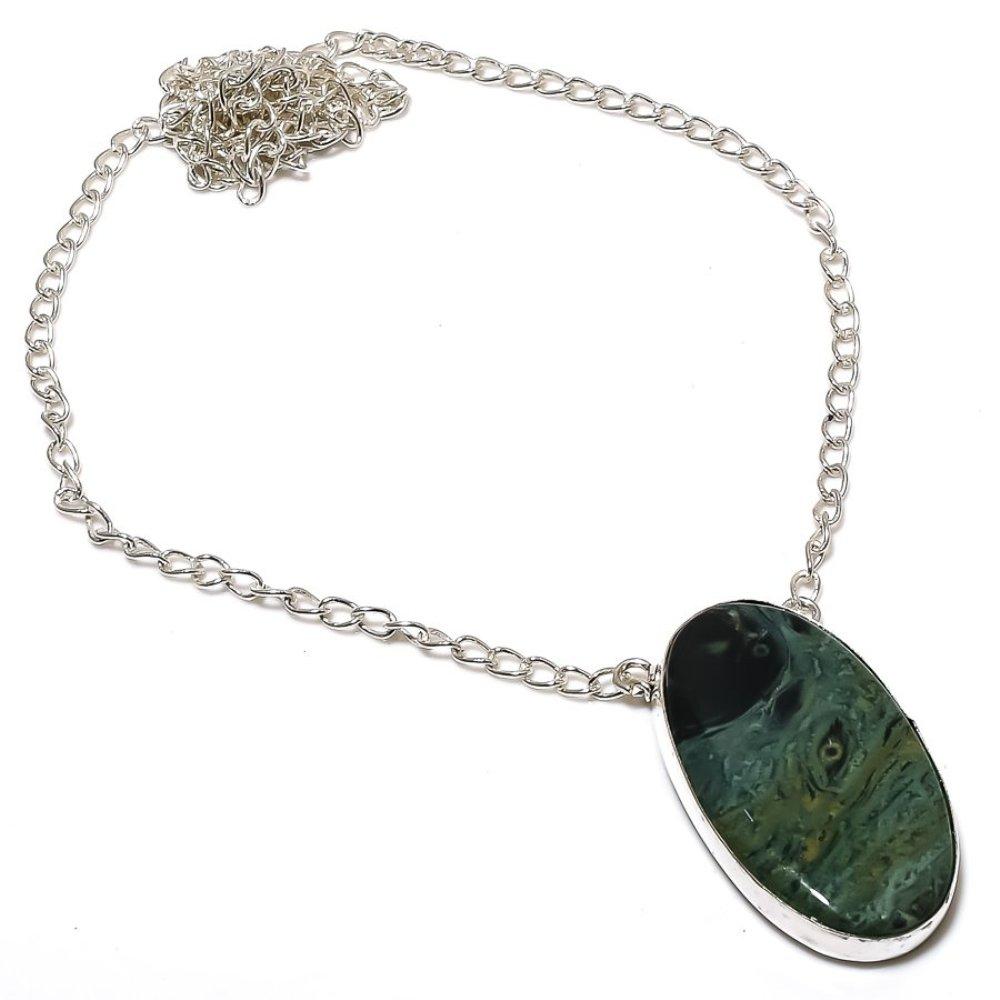 Камбаба Яшма Ручная Работа 925 Стерлинговое Серебро Ювелирное Ожерелье 18" i0L12
