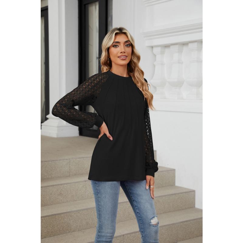 YYFS Женские модные повседневные весенне-осенние однотонные блузки и рубашки с круглым вырезом с длинными рукавами и принтом