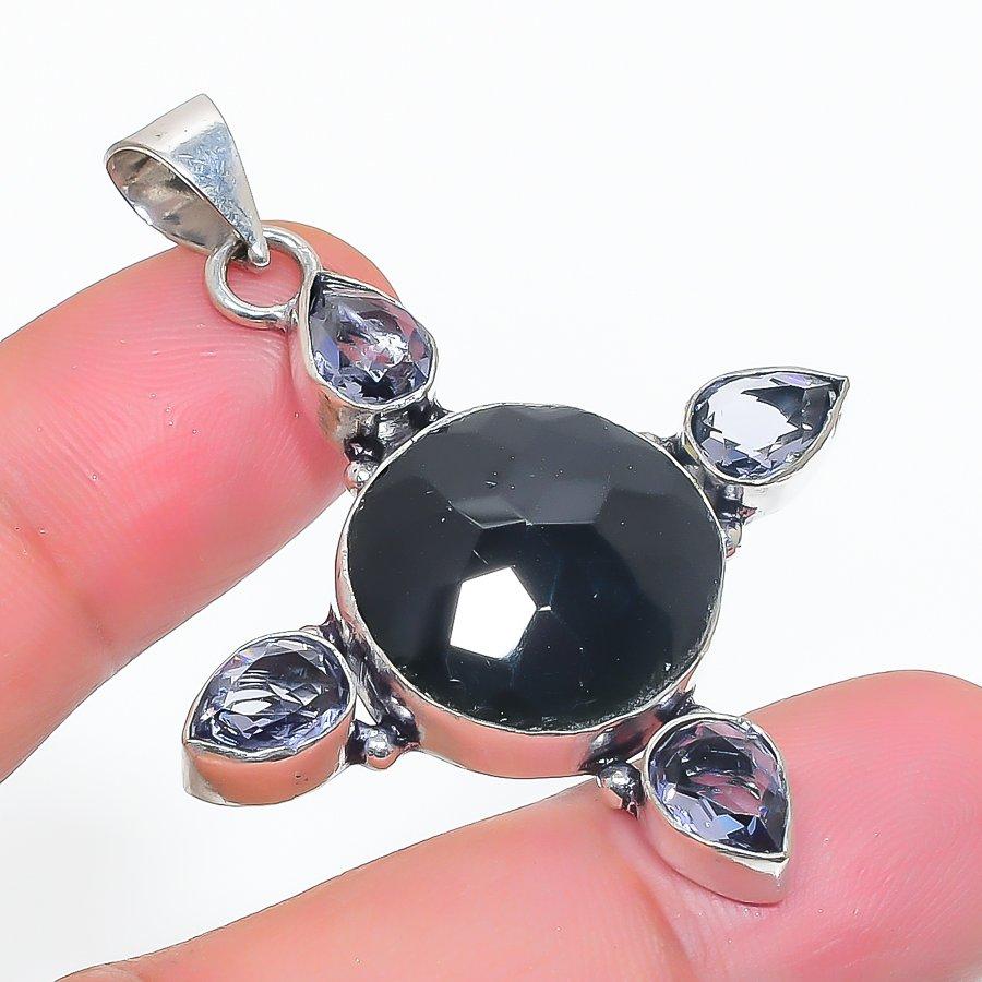 Черная шпинель, аметист Ручная работа Ювелирная подвеска из серебра 925 пробы 1,97"