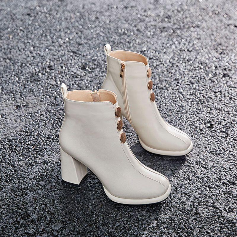 Обувь Белые короткие туфли для женщин Водонепроницаемые ботильоны на очень высоком каблуке Женские ботильоны на каблуке Новые дизайнерские роскошные горячие ПУ