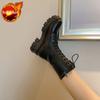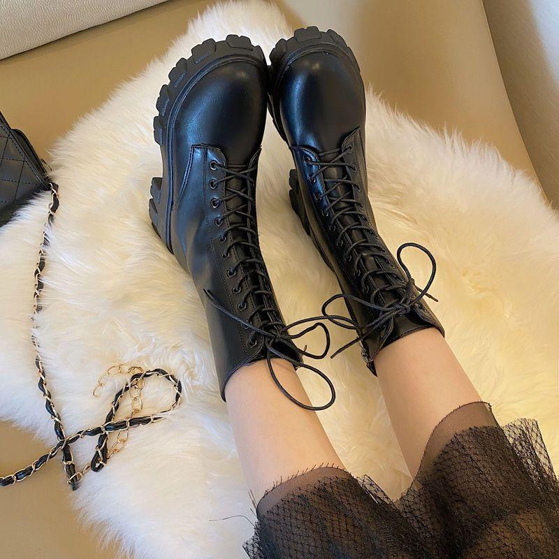 Обувь для женщин, женские сапоги до середины голени, с круглым носком, полувысокие, новые, рок-байкерские, черные, водонепроницаемые, Gyaru, стильные, предложение на