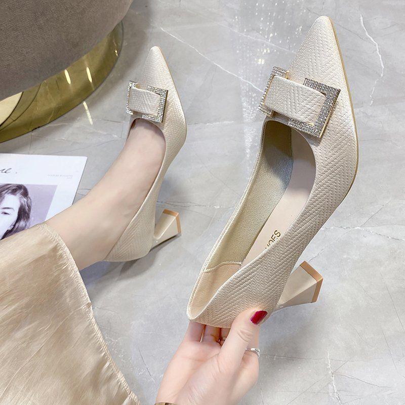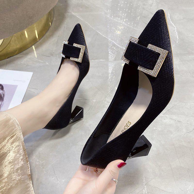 Женская летняя обувь, синие туфли-лодочки для женщин 2024 года на каблуке, свадебные туфли невесты с острым носком и стразами, весна