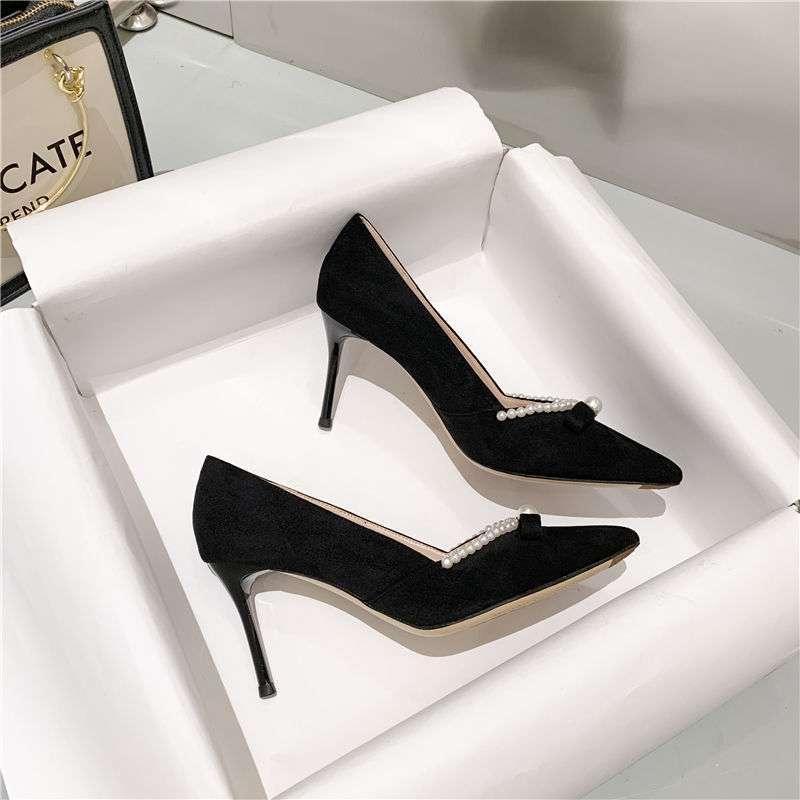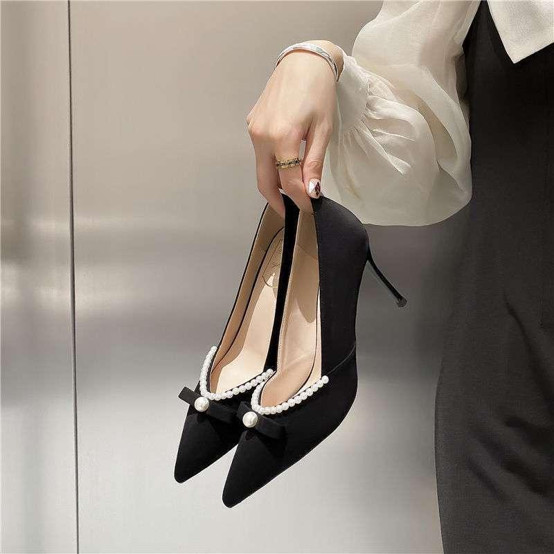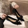 Туфли для женщин 2024 Стилето на среднем каблуке Женская летняя обувь Острый носок Бант Вечерний жемчуг Распродажа Молодежный шик Point E A