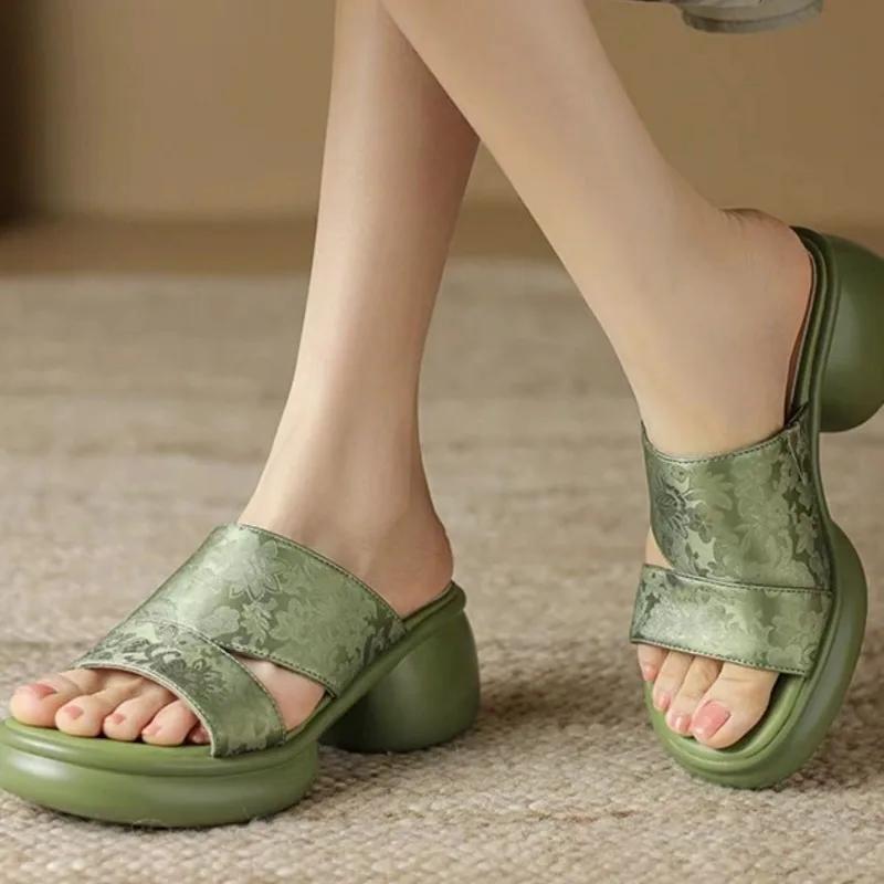 Женские тапочки и босоножки на высоком каблуке до 5 см. Модные лучшие модели 2024 года. Оригинальные уникальные повседневные шлепанцы.