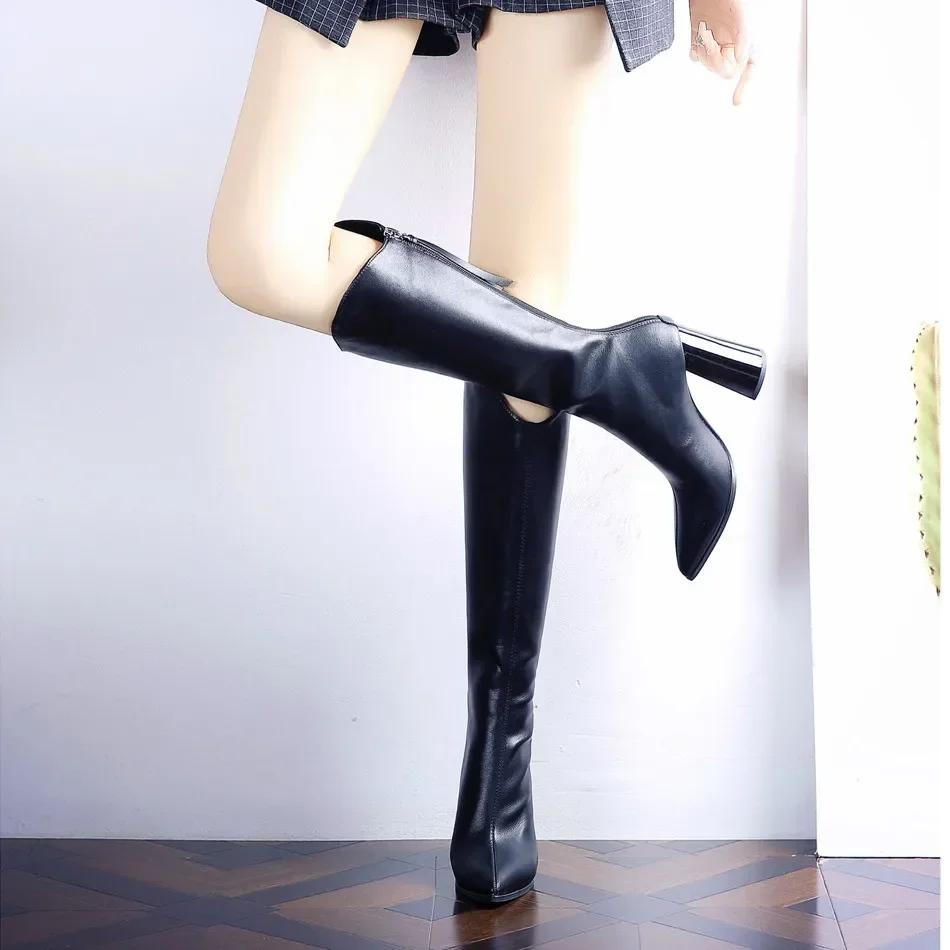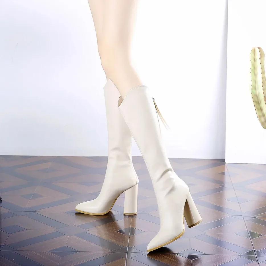 Большие размеры, теплые женские высокие сапоги, элегантные туфли на каблуке, зима 2024, весна, женские туфли до колена, водонепроницаемые, распродажа