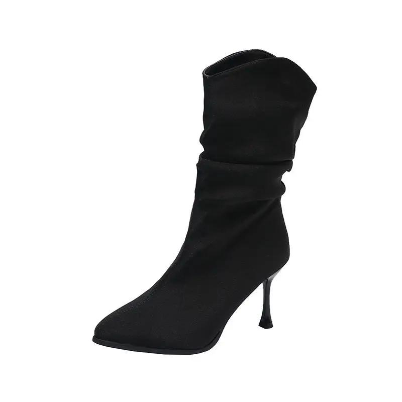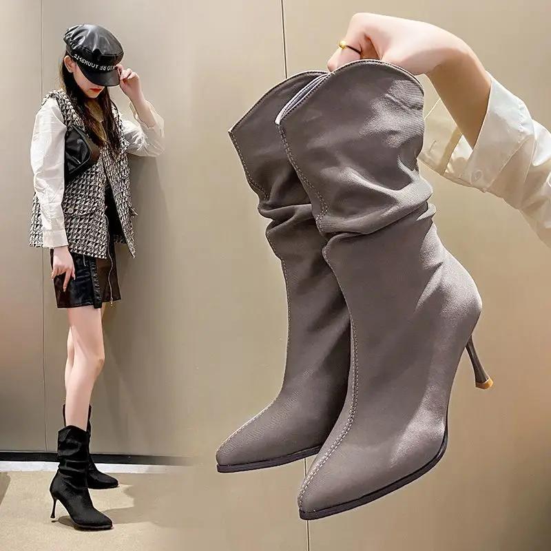 Элегантные женские полусапожки на высоком каблуке с острым носком, весна-осень, распродажа, шикарная зимняя обувь 2024 года, новинка, женская обувь до середины голени