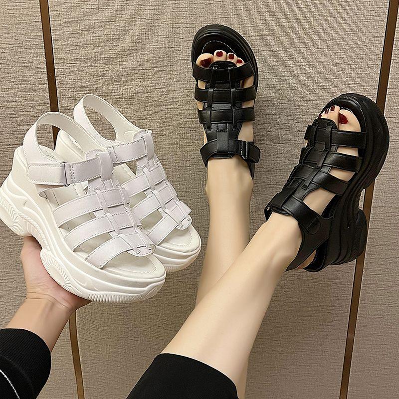Лето 2024 года женские туфли в римском стиле на танкетке с платформой, водонепроницаемые сандалии для женщин, обувь на танкетке, белый сверхвысокий каблук HF