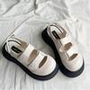 2024 Высококачественная женская обувь, летняя мода, круглый носок, средний каблук, толстая подошва, повседневные однотонные женские сандалии Baotou