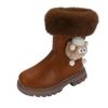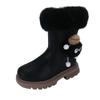 Модные ботинки для девочек 2024 Осень Зима Теплый Мех Толстый Плюшевый Пушистый Волосатый Шарик Милый Мультяшный Детские Термоботинки До середины икры Молния