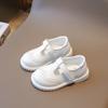 2024 Весна T-Strap Черная британская школьная обувь на липучке с круглым носком Универсальная мягкая детская повседневная обувь для мальчиков и девочек на плоской подошве