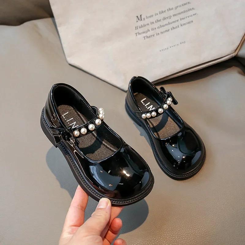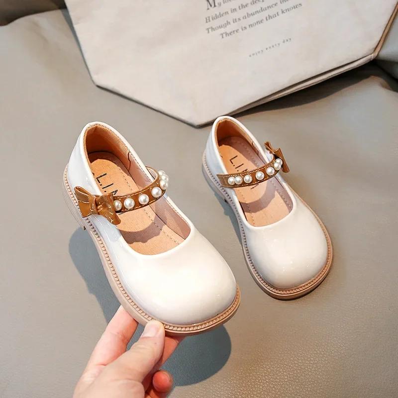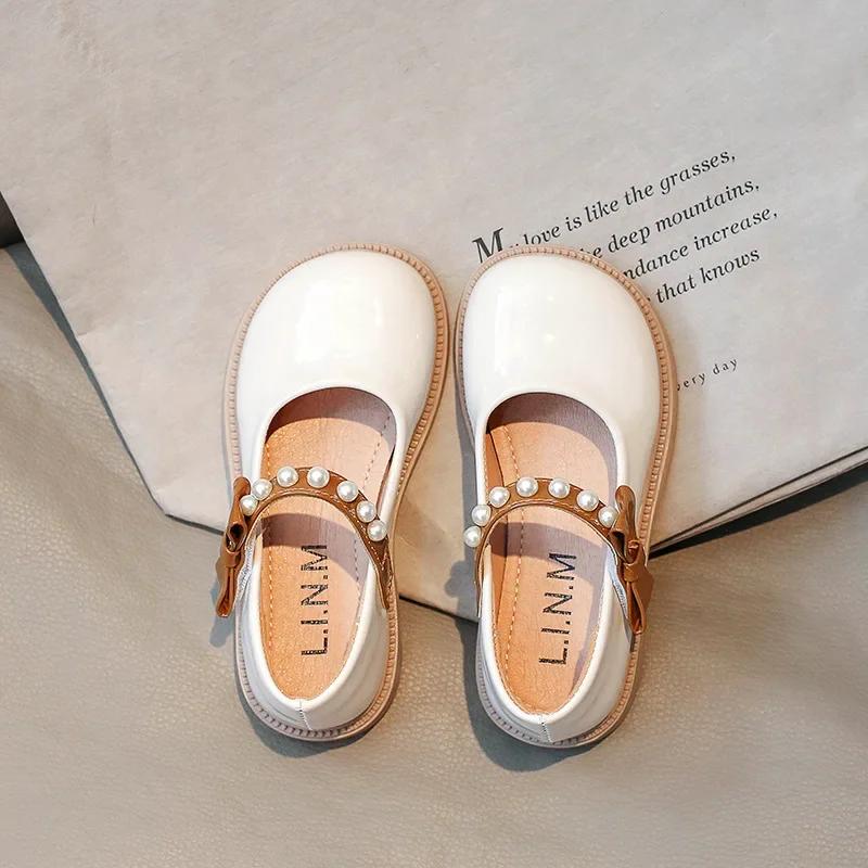 Детские кожаные туфли весна осень детские туфли Мэри Джейн милые жемчужные бантики для девочек принцесса туфли для вечеринки школы универсальные