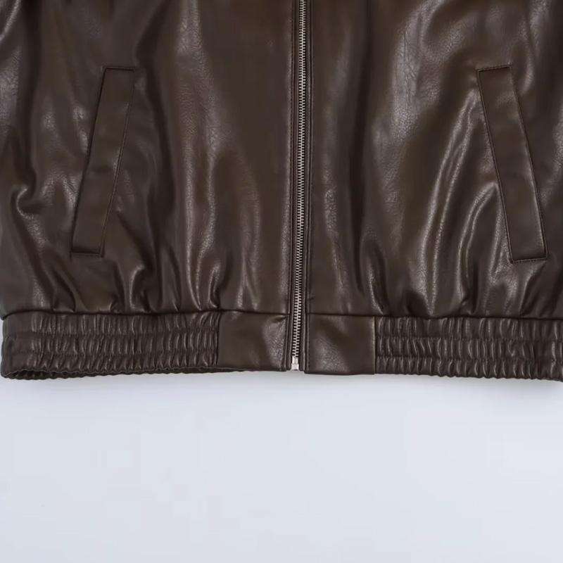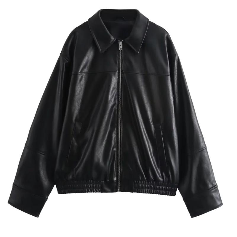Женские куртки Укороченная куртка из искусственной кожи Женская осенняя куртка-бомбер с длинным рукавом Черная модная демисезонная куртка