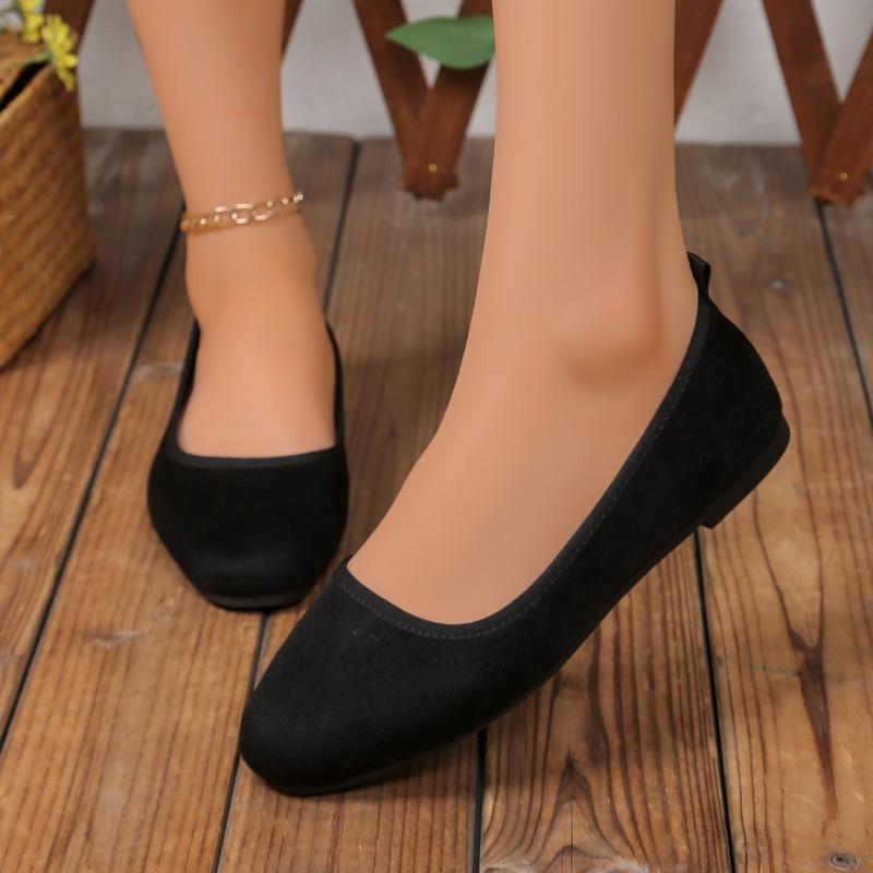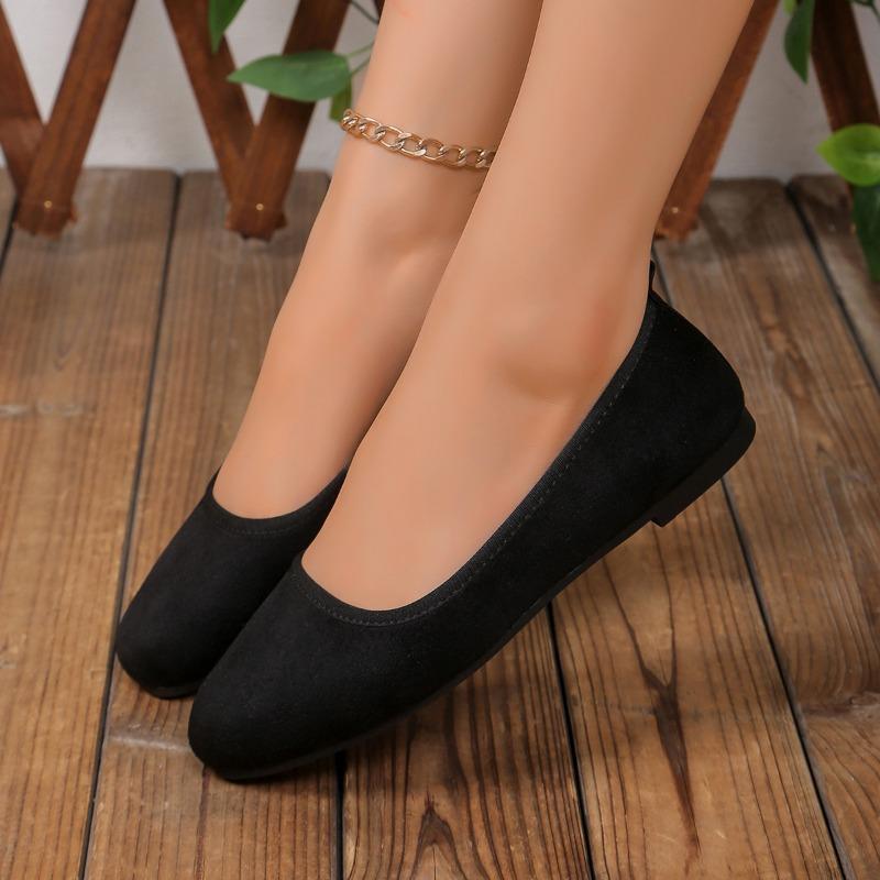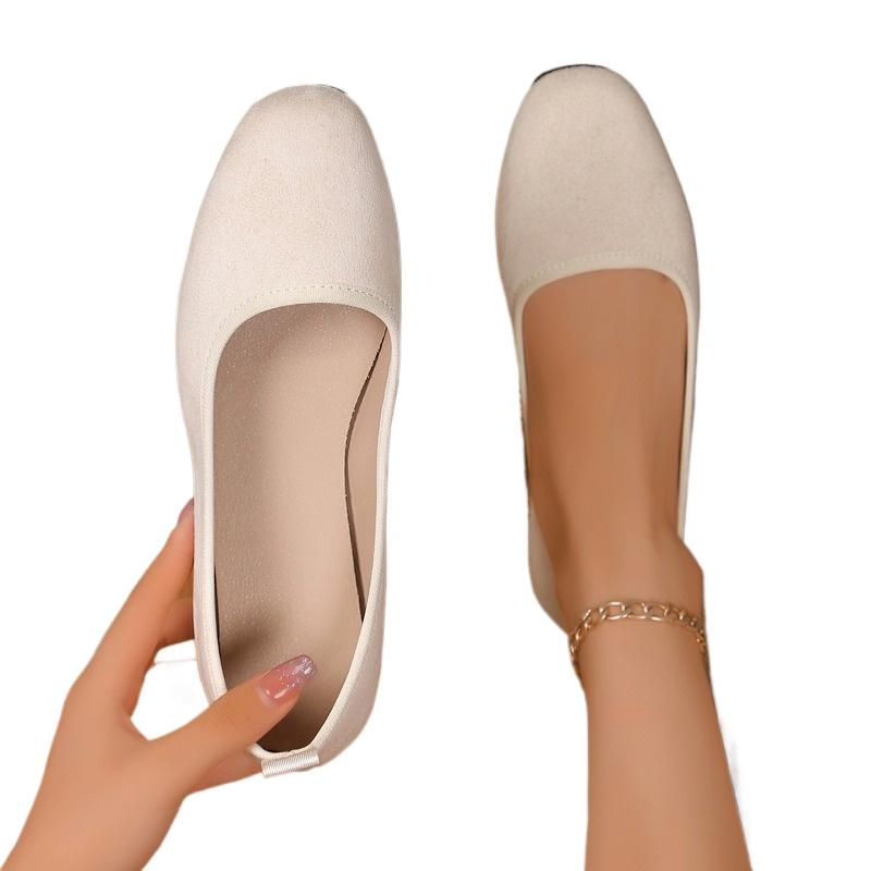 2024 Весна и Осень Модная женская обувь Лидер продаж Однотонные туфли с круглым носком и неглубоким воротом на низком каблуке без застежек Женские туфли на плоской подошве