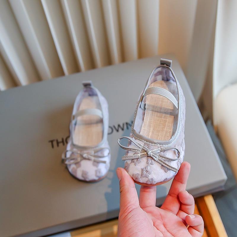 Детская мода Девочки Балетки 2024 Новые Мягкие Дышащие Эластичная резинка Цветы Милые Туфли принцессы Простые Прямая поставка Простые Шикарные