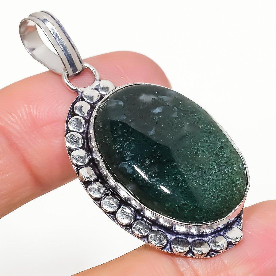 Индийский моховой агат Ручная работа 925 стерлинговое серебро Подарочный кулон 1,97" B1v55