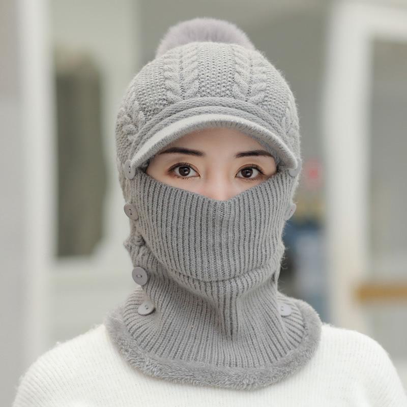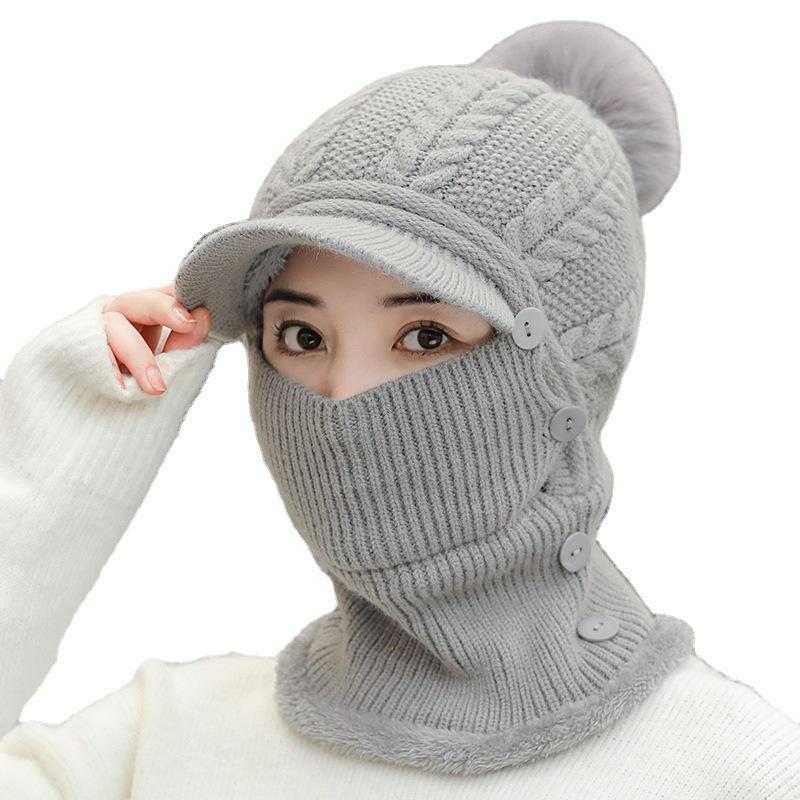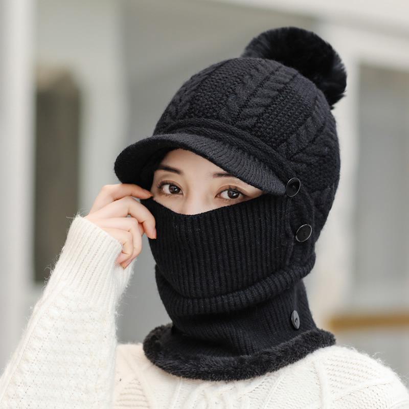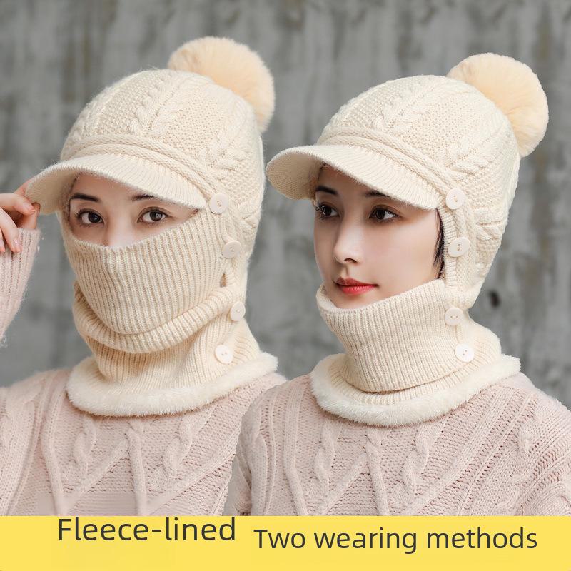 Женский зимний теплый вязаный шарф в корейском стиле и шапка-утконос с бархатом