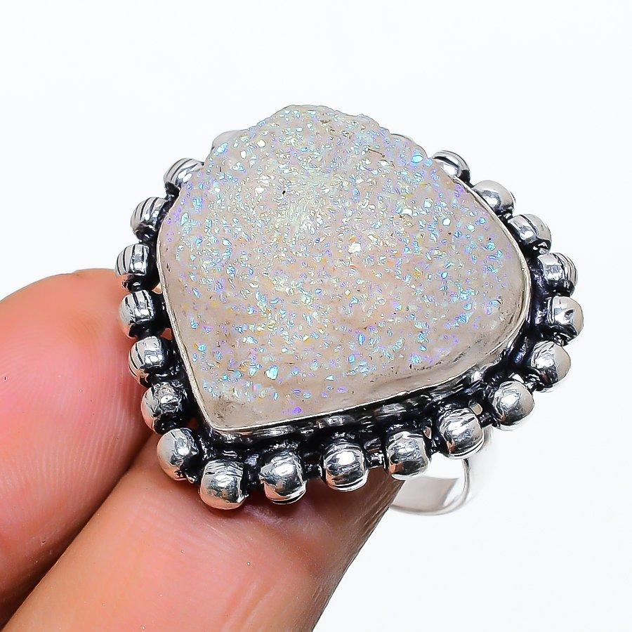 Титановая друза ручной работы ювелирное изделие кольцо из стерлингового серебра 925 пробы размер 9 T1q25