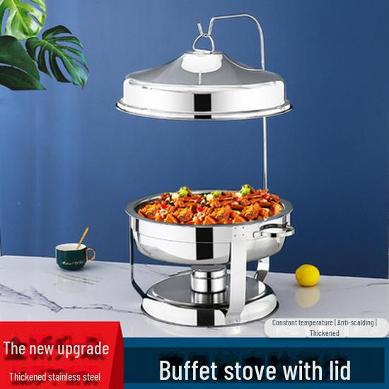 Многофункциональная плита из нержавеющей стали для шведского стола с откидной крышкой и видимой спиртовой горелкой
