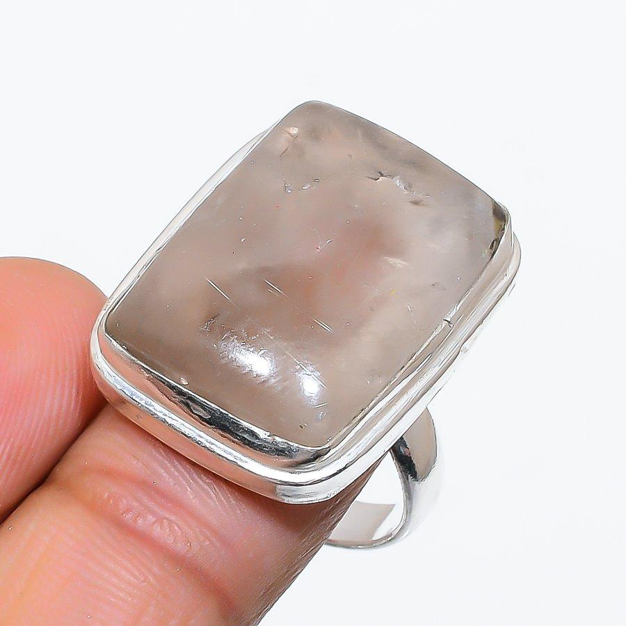Розовый Кварц Ручной Работы 925 Стерлинговое Серебро Подарочные Ювелирные Изделия Размер Кольца 7.5 A2b45