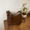 Вместительная замшевая сумка на молнии через плечо, однотонная, модная, трендовая сумка-тоут, мягкая строчка, простая подвеска, сумочка ARI